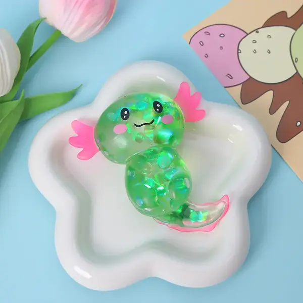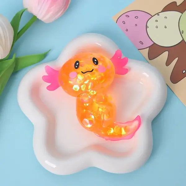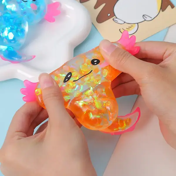 This 2026 new style axolotl squishy toy combines cute cartoon styling with shiny sequin details, bringing you a fun and healing stress-relief experience. Made of soft malt sugar-like material, it offers a smooth, slow-rising and controllable squeezing sensation—perfect for releasing anxiety, tension and boredom anytime.