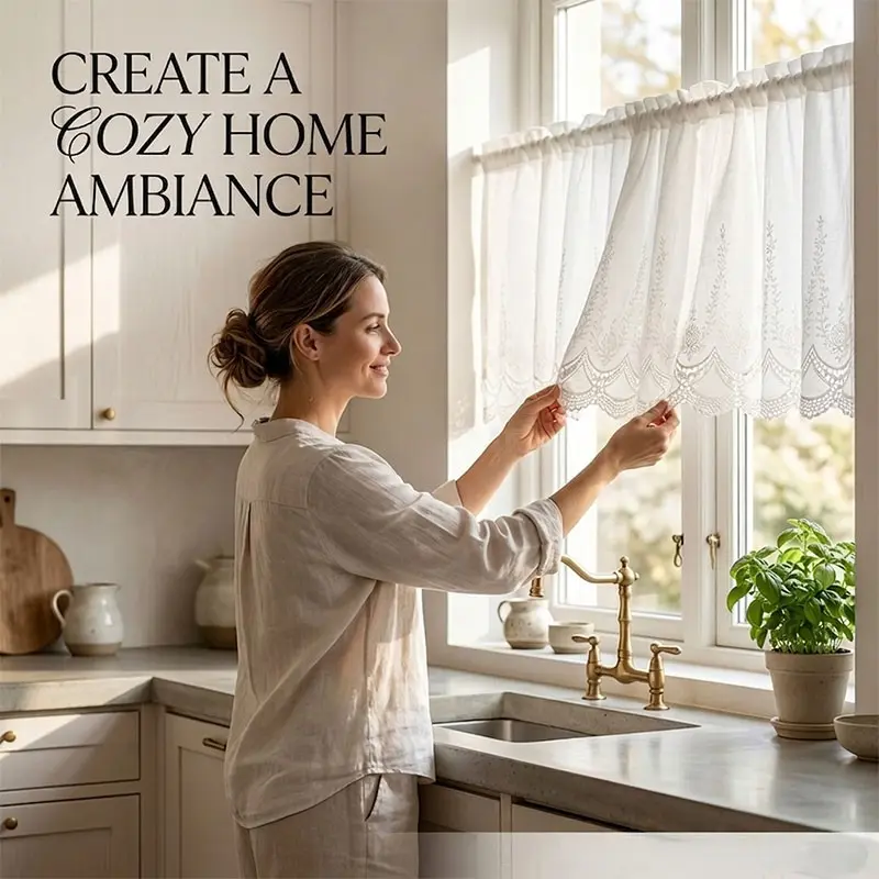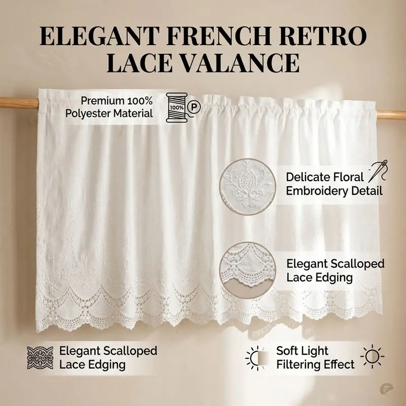 French Lace Curtain, Lace Fabric, Hollow Design, Wrinkle-Resistant, Easy Wash, Quick Dry, Sunlight Resistant, Kitchen/bathroom/patio