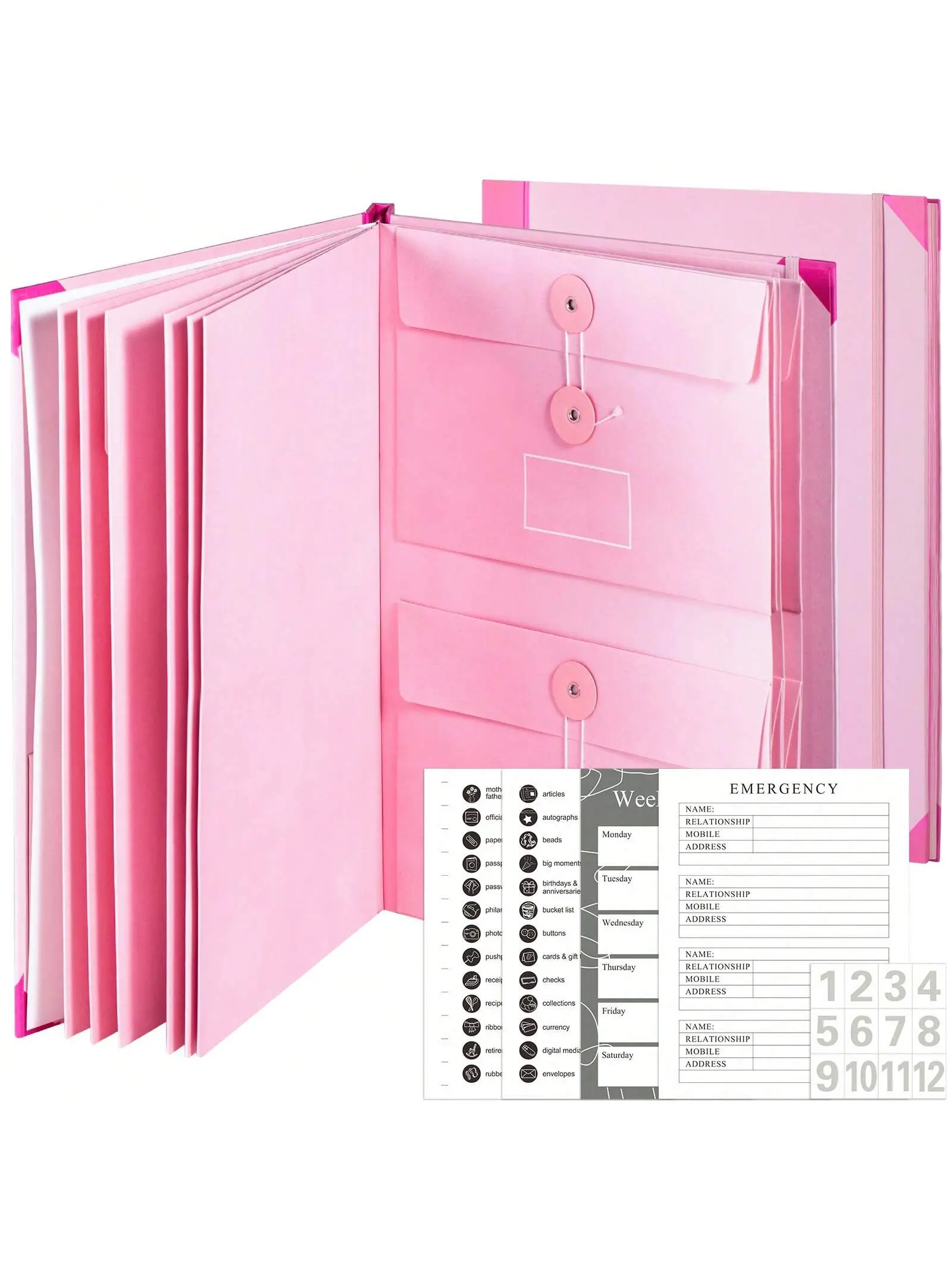 This binder is perfect for managing documents at home, school, or the office. It features labels, folders, and pockets for easy access. The accordion expanding design ensures ample storage. Available in blue, pink, and yellow, it suits various preferences. Ideal for school and medical records, this portfolio binder keeps your documents tidy.