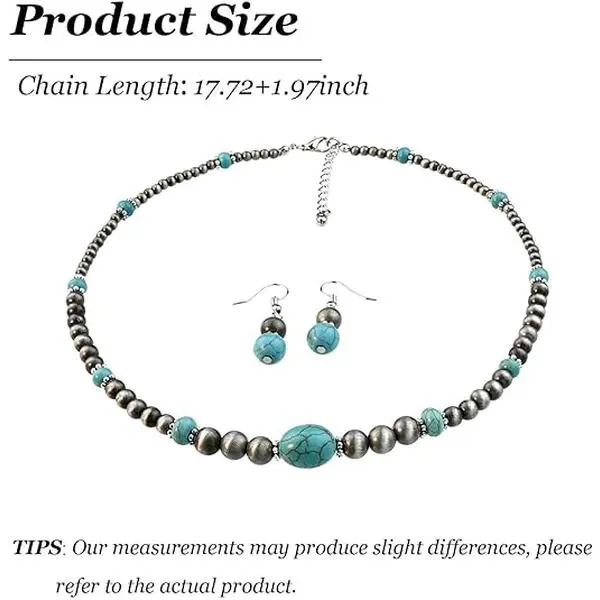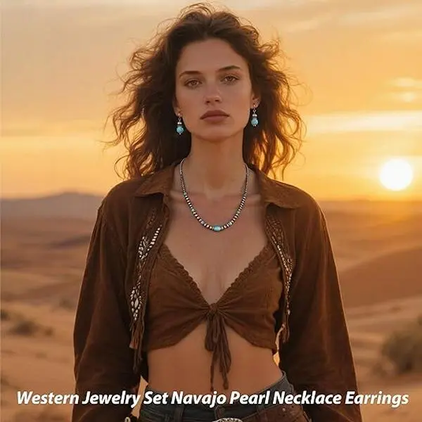 GleamJoy S Western Jewelry Set Navajo Pearl Necklace Earring Set Turquoise Jewelry for Women Country Concert Cowgirl Dress Boho Necklaces Western Outfit for Women