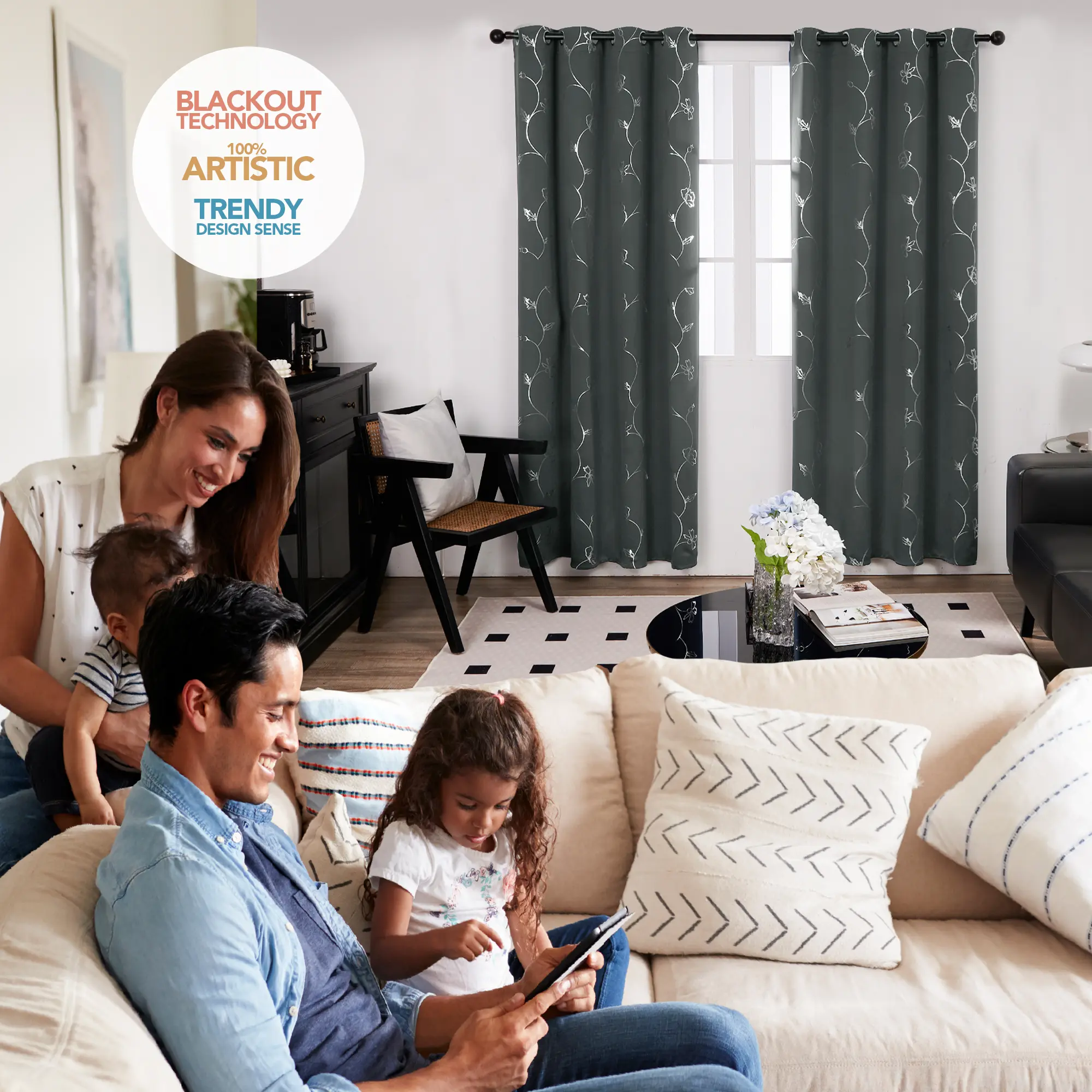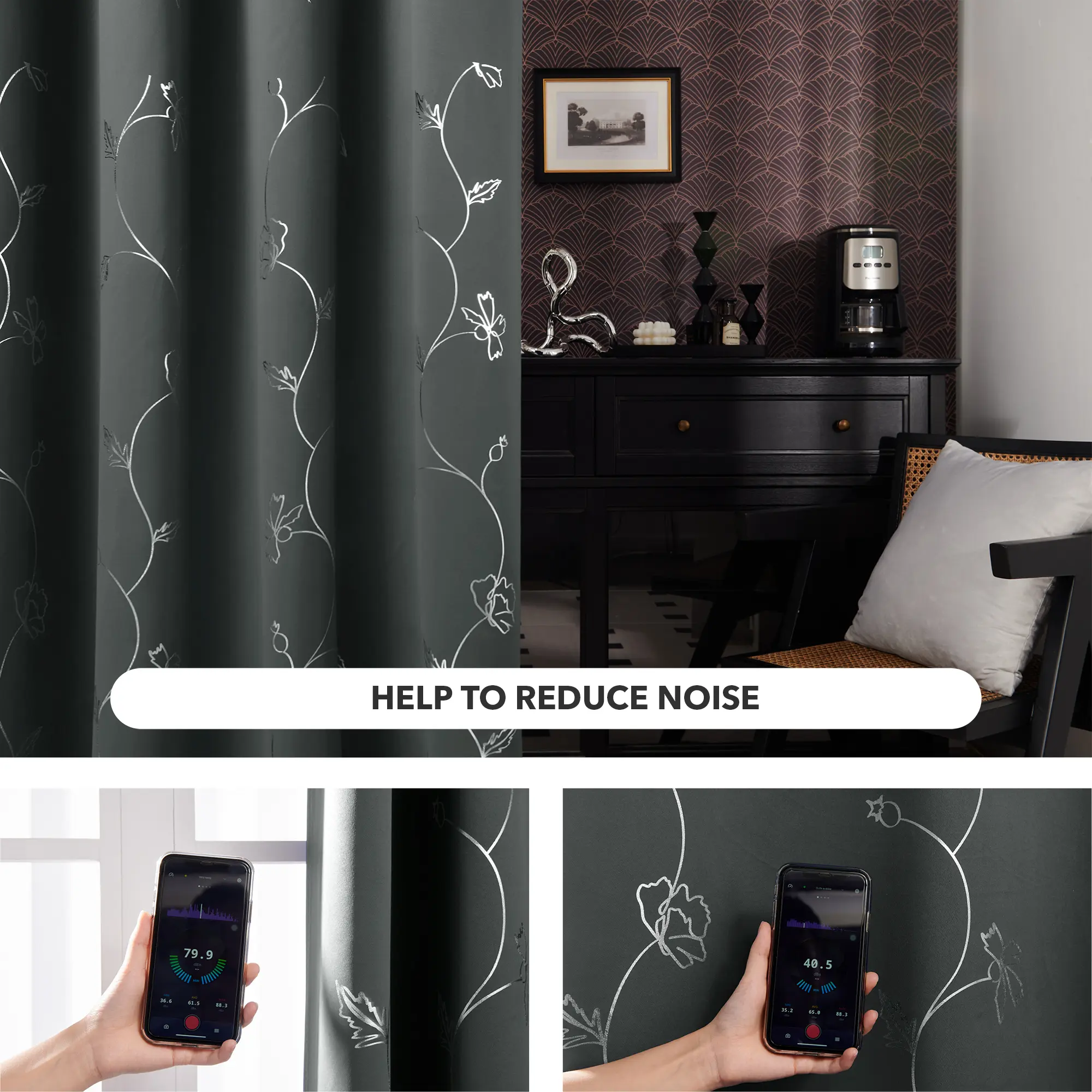 ·DESIGN and TEXTURE - These blackout curtains are made of high quality polyester fabric. Light, soft and comfortable. The silver foil print pattern demonstrates a strong sense of elegance, its appearance makes the curtain full of the breath of nature