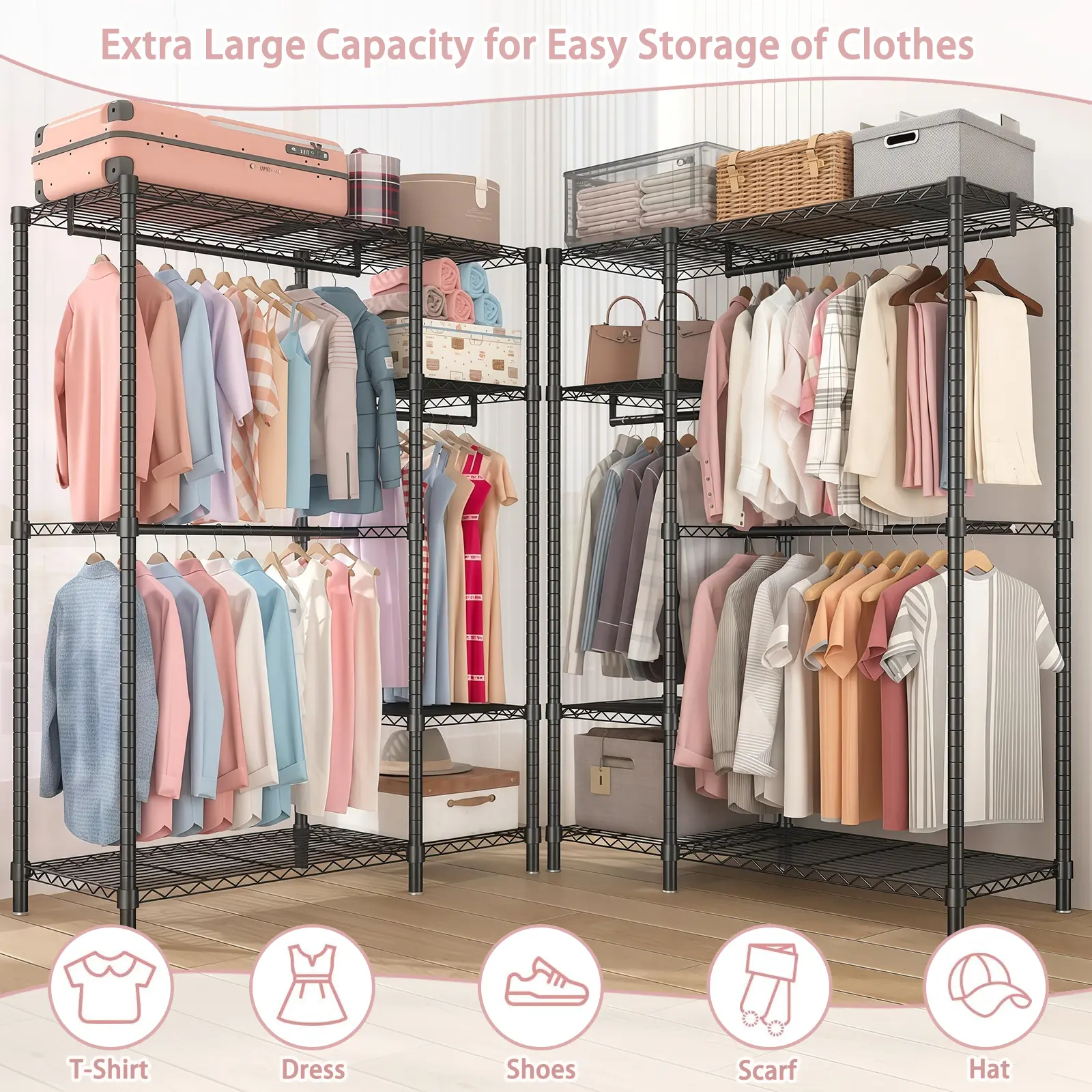 Heavy Duty Clothes Rack | 6 Adjustable Wire Shelves + 3 Garment Rails | Carbon Steel | Freestanding | Space-Saving | Black Metal