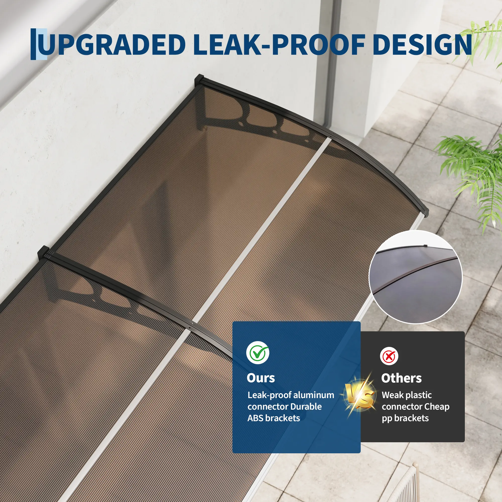 Polycarbonate Door Awning with All-Weather Protection - 100x200cm (40"x80") Panel & Reinforced Bracket for Home Entrance & Window - Brown