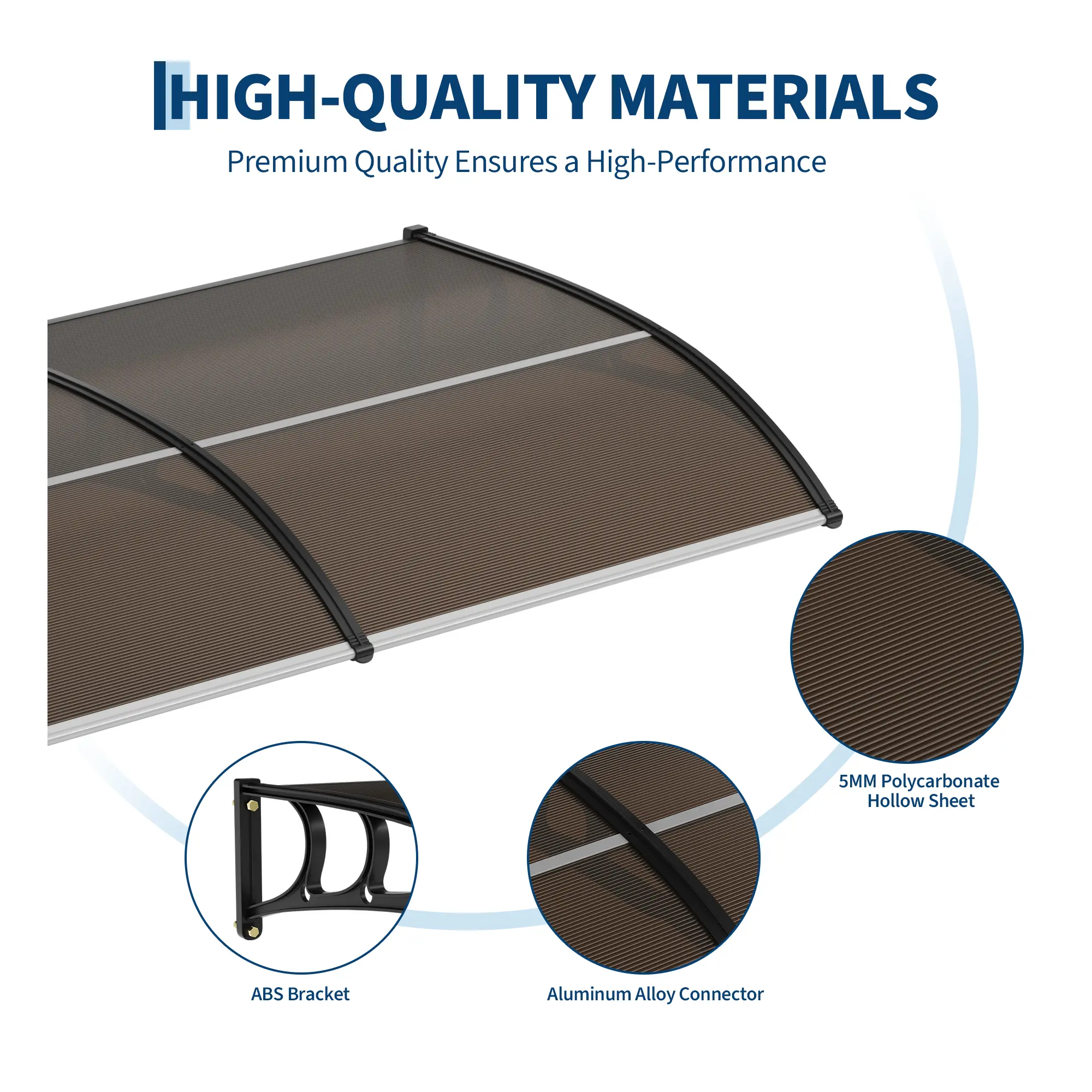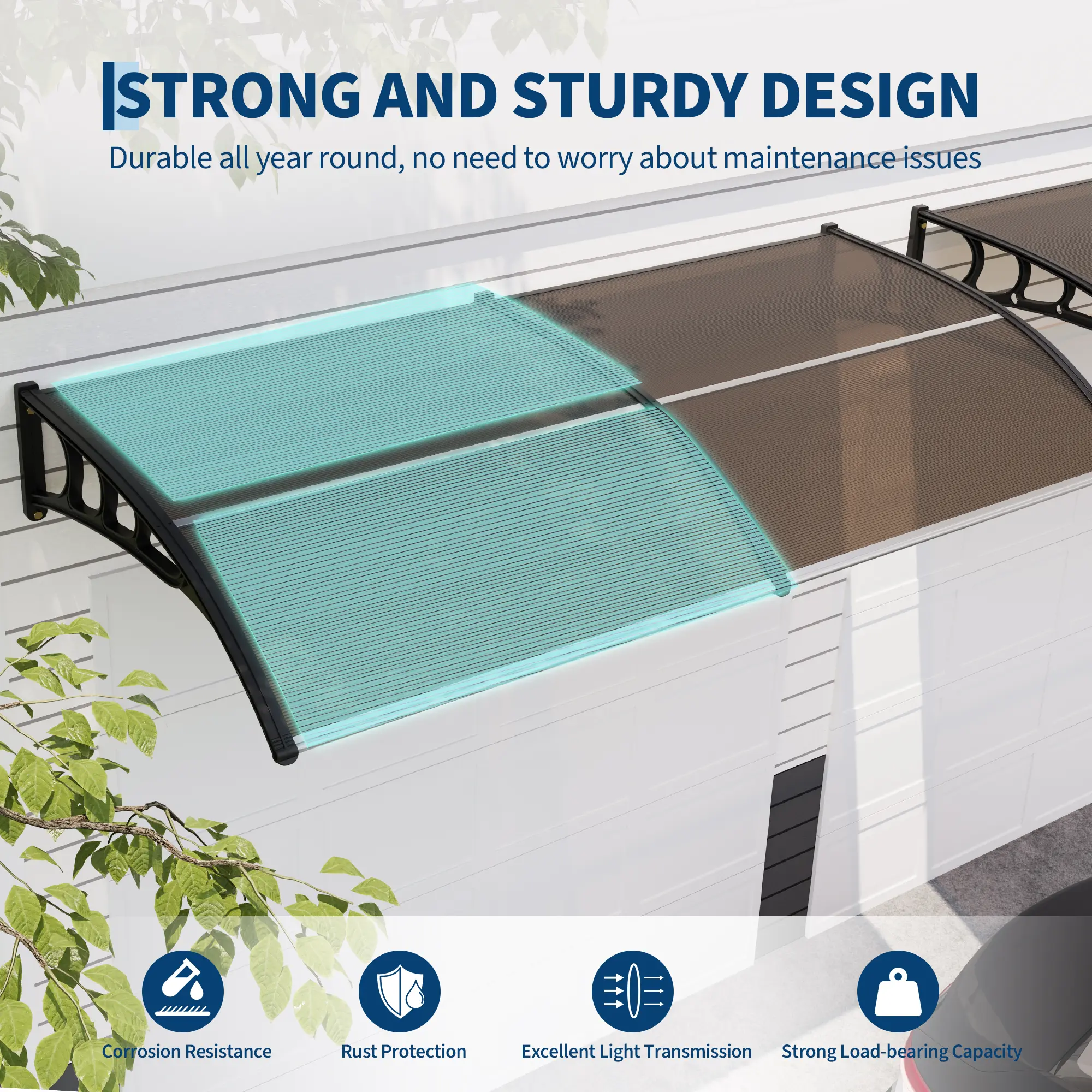 Durable Outdoor Awning for Door & Window EntrancesEnhance your home's entryway or window with this select outdoor awning canopy. Designed for both residential and commercial use, it delivers reliable UV, rain, snow, and sunlight protection—keeping your entrance safe and your interiors comfortable all year round.Robust Polycarbonate Cover: The high-quality, clear polycarbonate panel efficiently covers against the elements while allowing natural light to filter through. Its impact resistance ensures long-term durability even in harsh weather.Reinforced Plastic Steel Brackets: Engineered to support the canopy securely, the brackets combine strength and corrosion resistance, offering a stable and stylish addition to your exterior.Generous Coverage: With a size of 40” x 80”, this awning is ideal for protecting doors, windows, patios, and storefronts. It extends ample coverage to prevent rainwater and UV rays from damaging your property.Modern & Versatile Design: The sleek, contemporary look complements any architectural style, making it a perfect upgrade for your garden, porch, or outdoor seating area.Easy Installation: Includes all necessary hardware and clear instructions for a hassle-free setup, so you can enjoy enhanced protection in just a short time.Whether you need a canopy for your door entrance, window, or as a shield for your outdoor furniture, this awning provides the ideal blend of function and style. Invest in lasting protection and curb appeal for your home today!