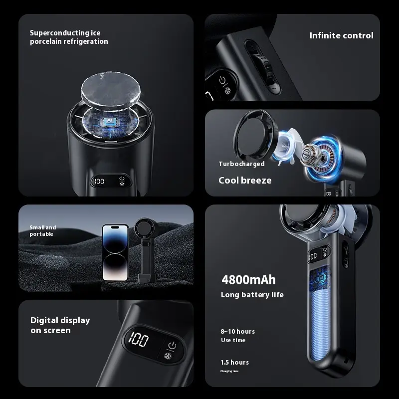 PLAYHOT Portable Handheld Turbo Fan, 5 Gear Wind,4000mAh Battery Operated, Up to 10 Working Hours, 3 IN 1 Hand Fan Rechargeable with Air Turbo Tech Cooling Fan for Outdoor Activities, Travel, Working, Summer Selected Products
