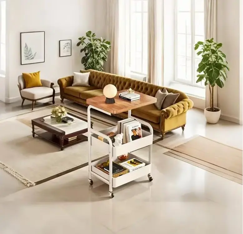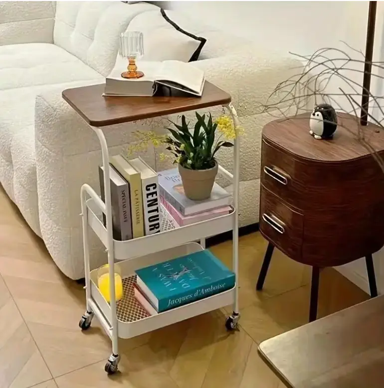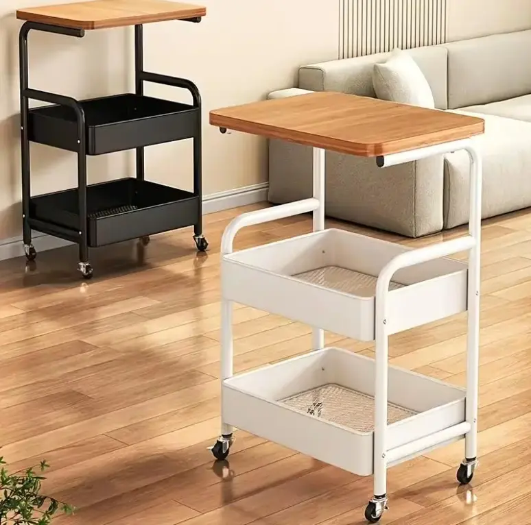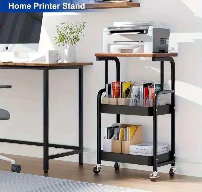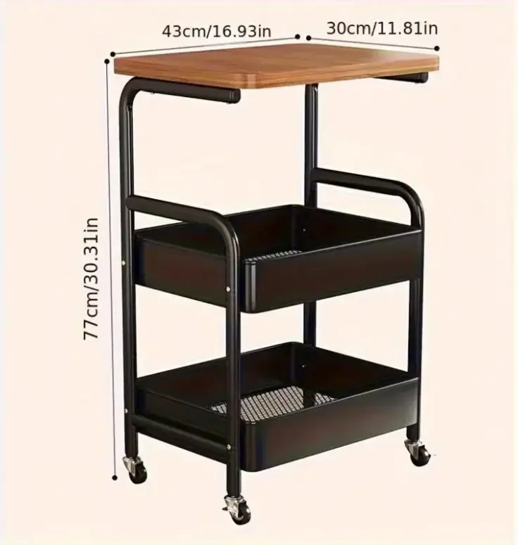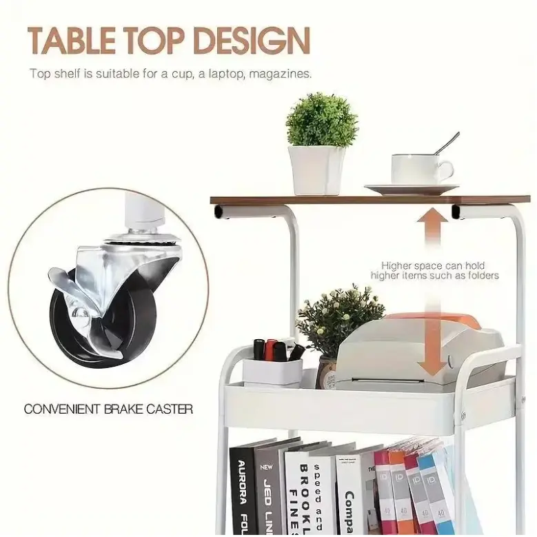 3-Tier Rolling Cart with Tabletop, Metal Tool and Snack Rack with Storage, Durable Carbon Steel Frame, Wheels for Easy Mobility, Perfect for Home or Office Use, Rolling Storage Cart