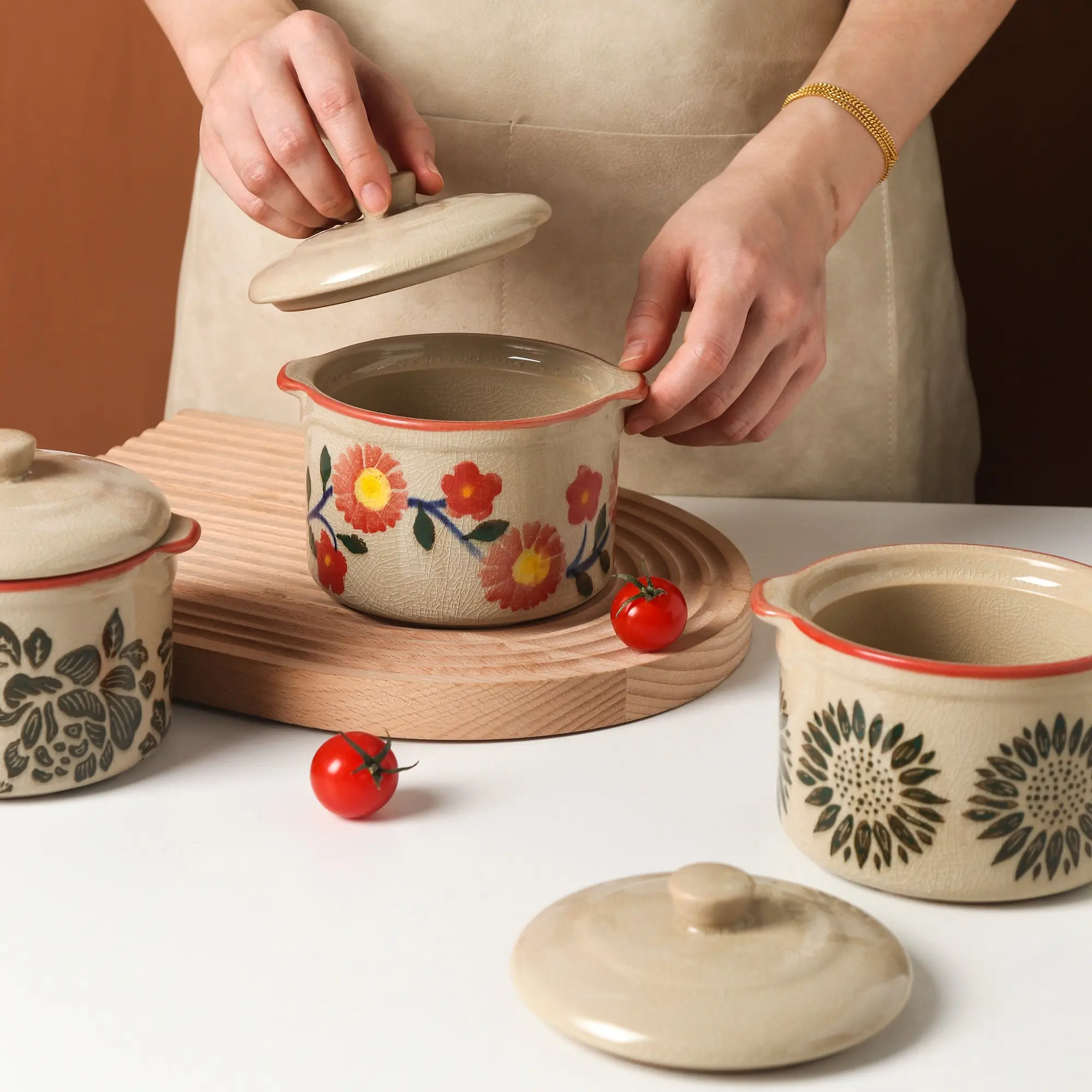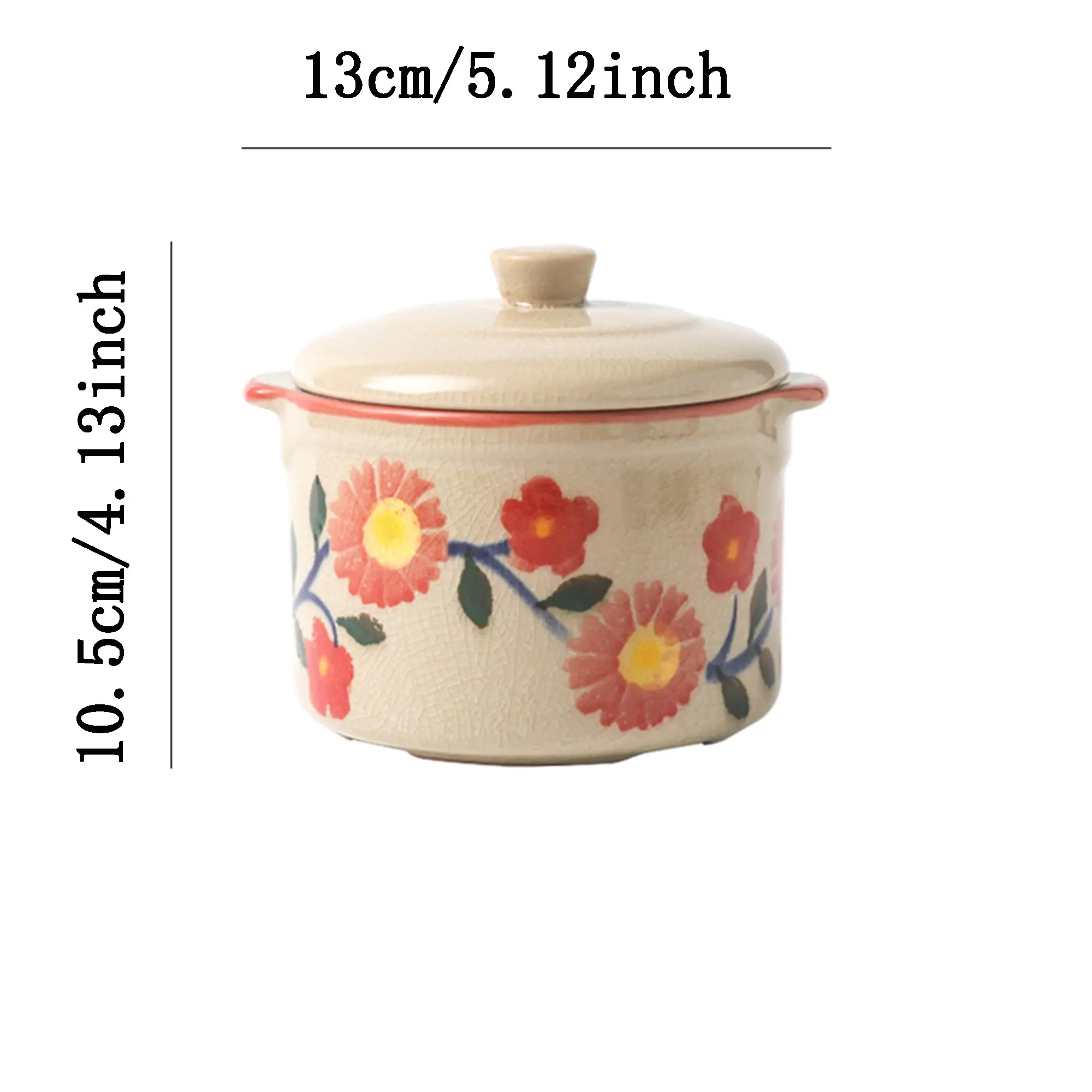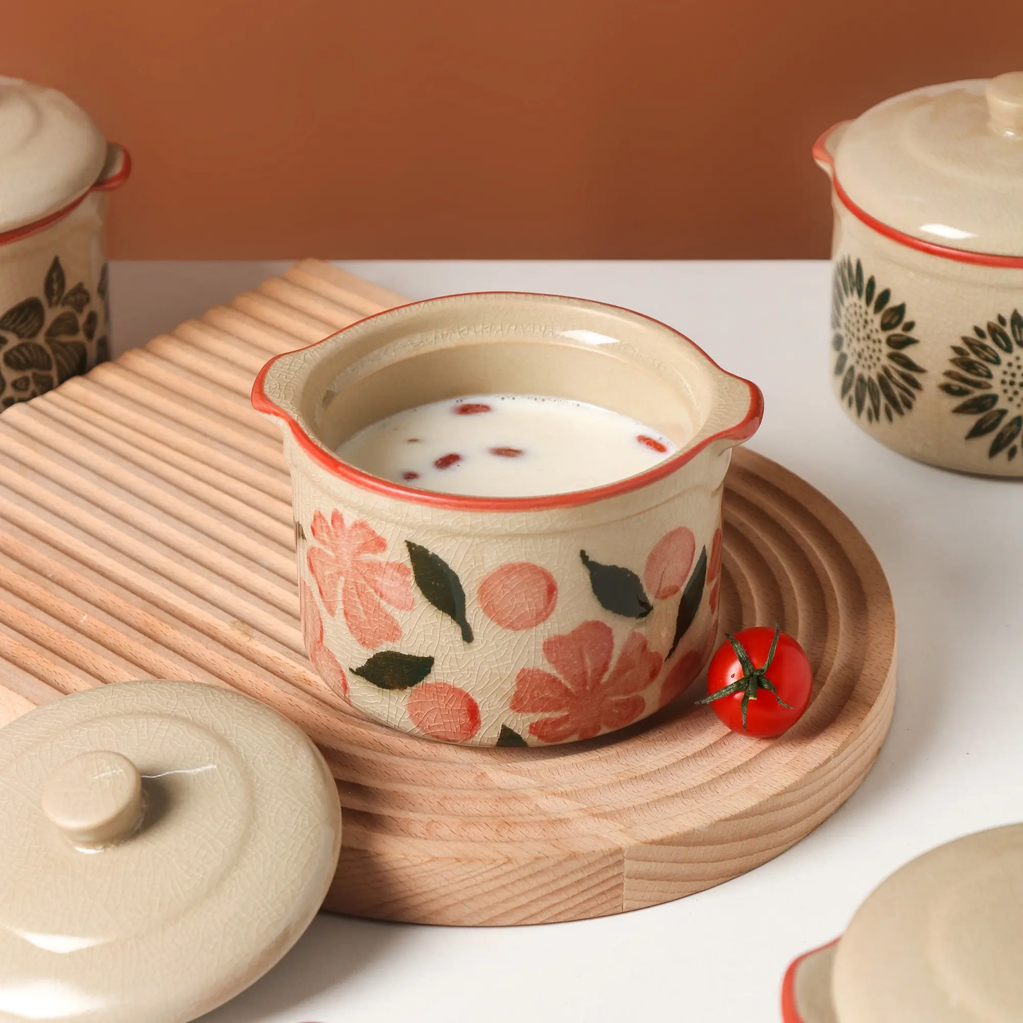 Ceramic Covered Casserole Dish, Ice Crack Pattern Steaming Pot, Unique Floral Design, Dishwasher Safe, Ideal for Soup and Noodles
