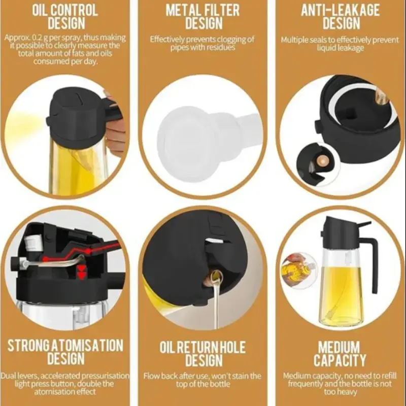 2-in-1 470ml Spray Bottle Oil Dispenser, Olive Oil Sprayer, Multifunctional Sprayer and Pourer for Kitchen Cooking, Air Fryer, Baking, Salad and BBQ