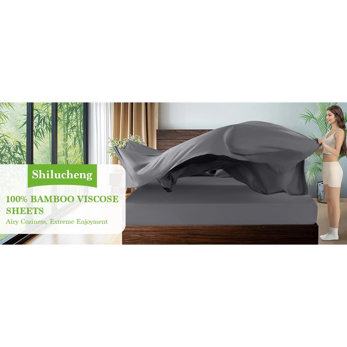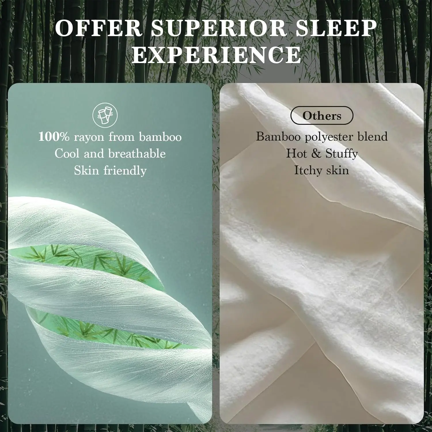 100% Rayon Derived from BambooHOT SLEEPERS REJOICE: Our Sheet Set are made from rayon derived 100% bamboo_ with a unique twill weave, making it stronger than cotton and smooth like silk.Wake Up Fresh & Sweat-Free with our!- Struggling with night sweats or overheating?Our temperature regulating sheets and moisture wicking sheets pull away heat and sweat so you can stay cool, dry, and comfortable all night longBECAUSE YOU DESERVE BETTER: Say goodbye to harsh chemicals, Shilucheng sheets are Oeko Tex certified - skin friendly and hypoallergenic bedding and those like you who value pure natural comfort.This sheets are naturally cool - 3 degrees cooler than cotton and linen material sheets.Sheets made from 100% bambo are super breathable, thermal regulating and keeping you dryer and more comfortablePERFECT FITS & LUXURY 6PC SHEET SET: Discover the ultimate fit with our king size sheets set tailored for standard mattress dimensions, with a deep 16" pocket for extra-thick mattresses. Package Includes 1 flat sheet 105" x 102", 1 fitted sheet 70"x80"x16",4 pillow cases 20" x 40"EASY CARE & WRINKLE RESISTANT: This sheets stay fresher for a longer time than traditional cotton and polyester sheets.They’re also fade, stain, and wrinkle resistant.These sheets are machine washable and dryer friendly.Wash using cold water.Line dry or tumble dry on low mode.No ironing needed.In addition, please avoid using fabric softeners and bleachesQUALITY SERVICE: Our service is based on the desire to help our customers solve all their problems. If for any reason you are not satisfied with your purchase, please contact us and we will resolve any issues until you are satisfied. Resistant to fading, shrinking, ripping, wrinkles, these bamboo_ sheets will remain fresh and silky-soft for years, which makes them the best sheets for your bedroom and hotel. A wonderful sleeping gift for ANY HOLIDAYS