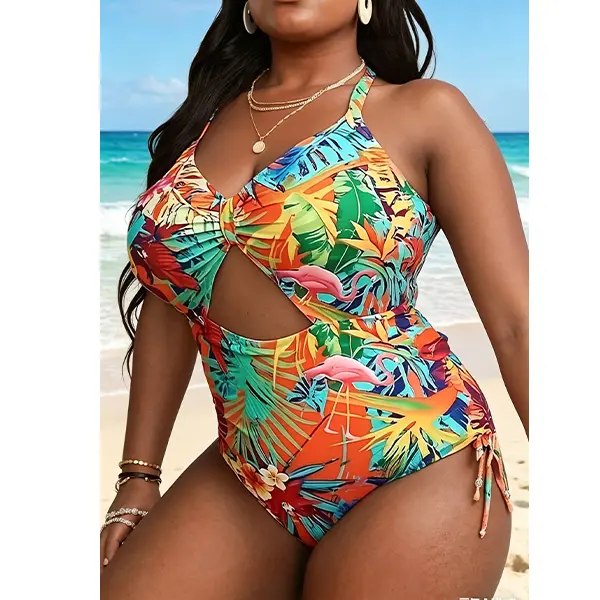 #PlusSizeSwimwear #SexySwimsuit #OnePieceSwimsuit #TropicalPrint #CutoutSwimsuit #HalterSwimsuit #CurvySwimwear #BeachBabe #SummerVibes #VacationOutfit