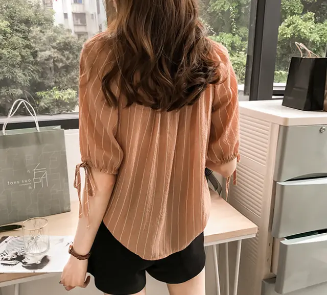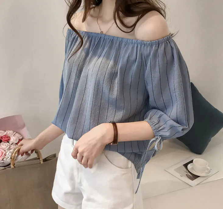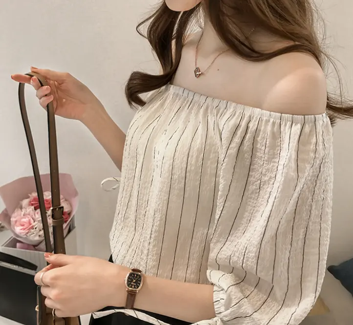 A Loose-Fitting Blouse with A One-Shoulder and A Striped Design, Suitable as A Base Layer for Women.
