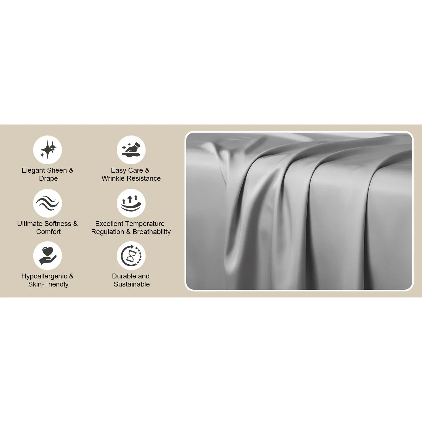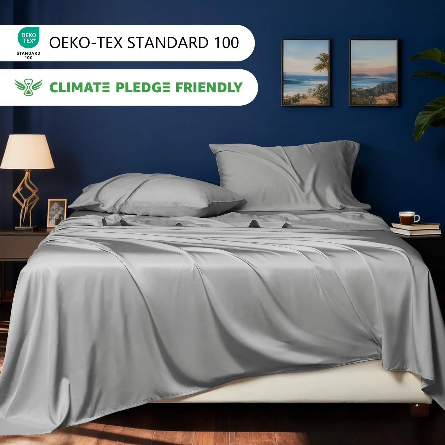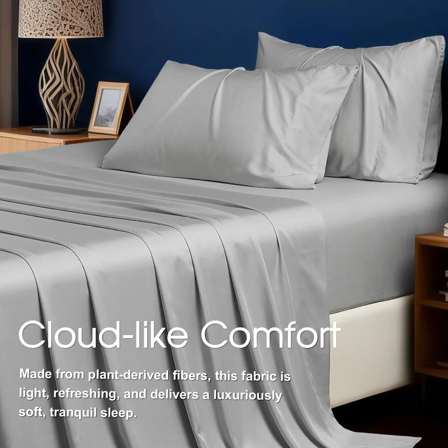 Cooling Sheets Queen – Rayon Derived from Bamboo, Silk Soft & Breathable, Luxury Sheet Set, Deep Queen Sheets Fits 18"–24" Thick Mattress - Light Grey