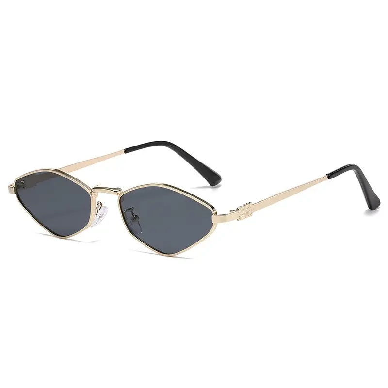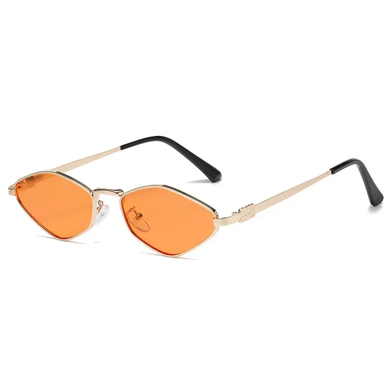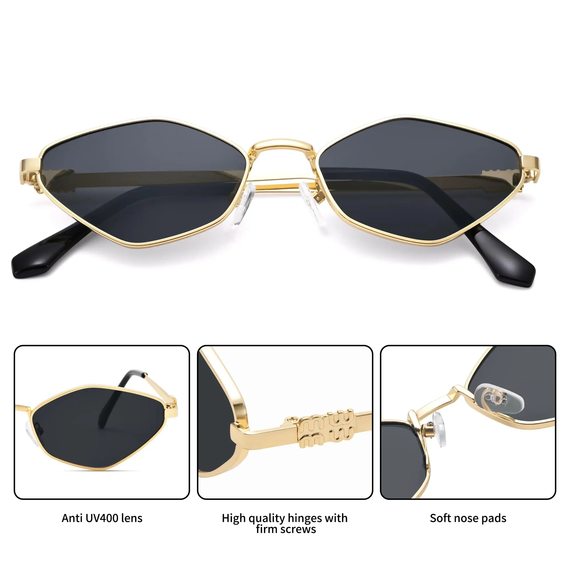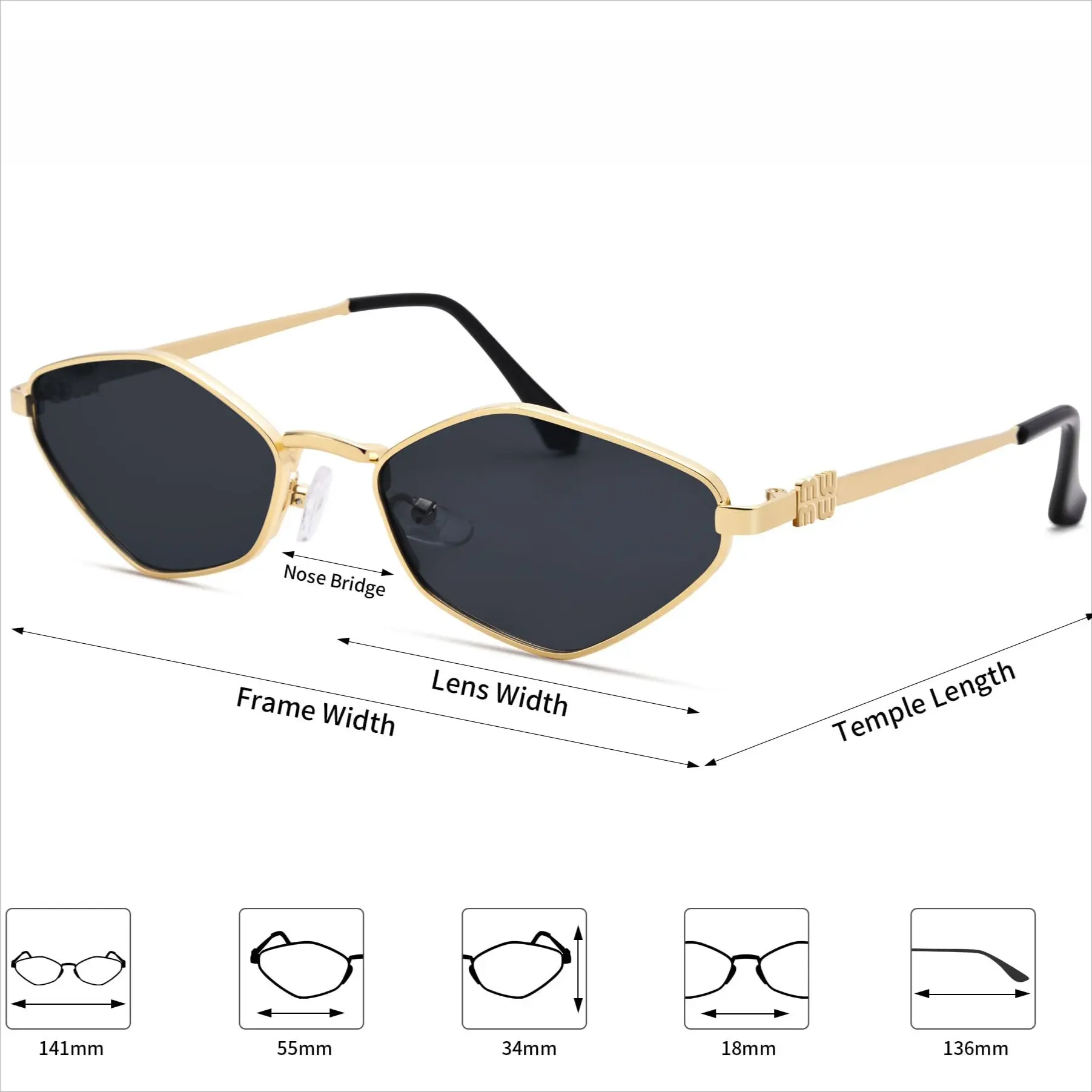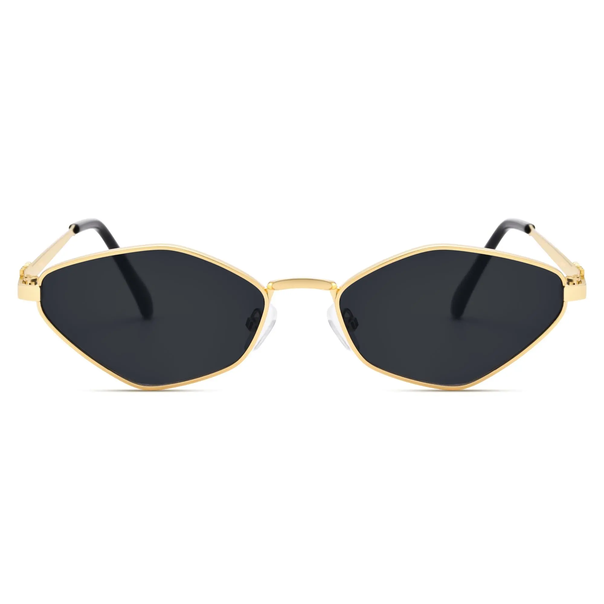 Retro Small Sunglasses for Women Men - New Trendy 90s Metal Frame Sun Glasses Gold Frame Narrow Shades