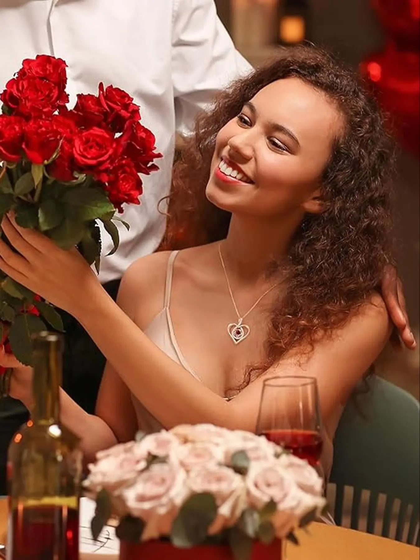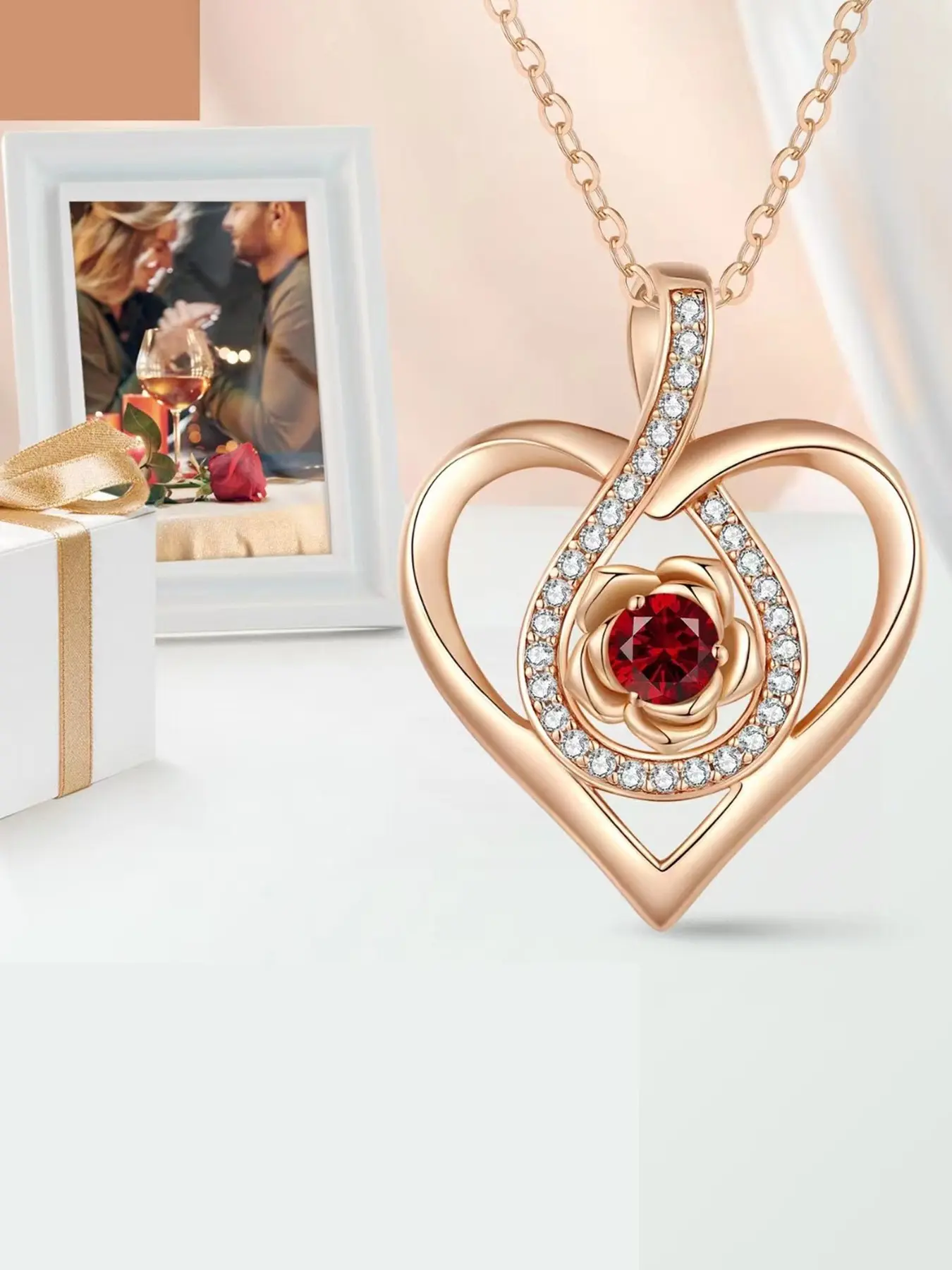 【Heart-Shaped Pendant】: Includes a necklace with a heart-shaped pendant, enhancing the romantic appeal of the gift.