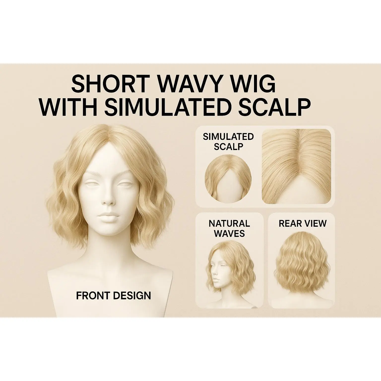 Short Wavy Blonde Wig with Simulated Scalp - Natural Short Wave Series