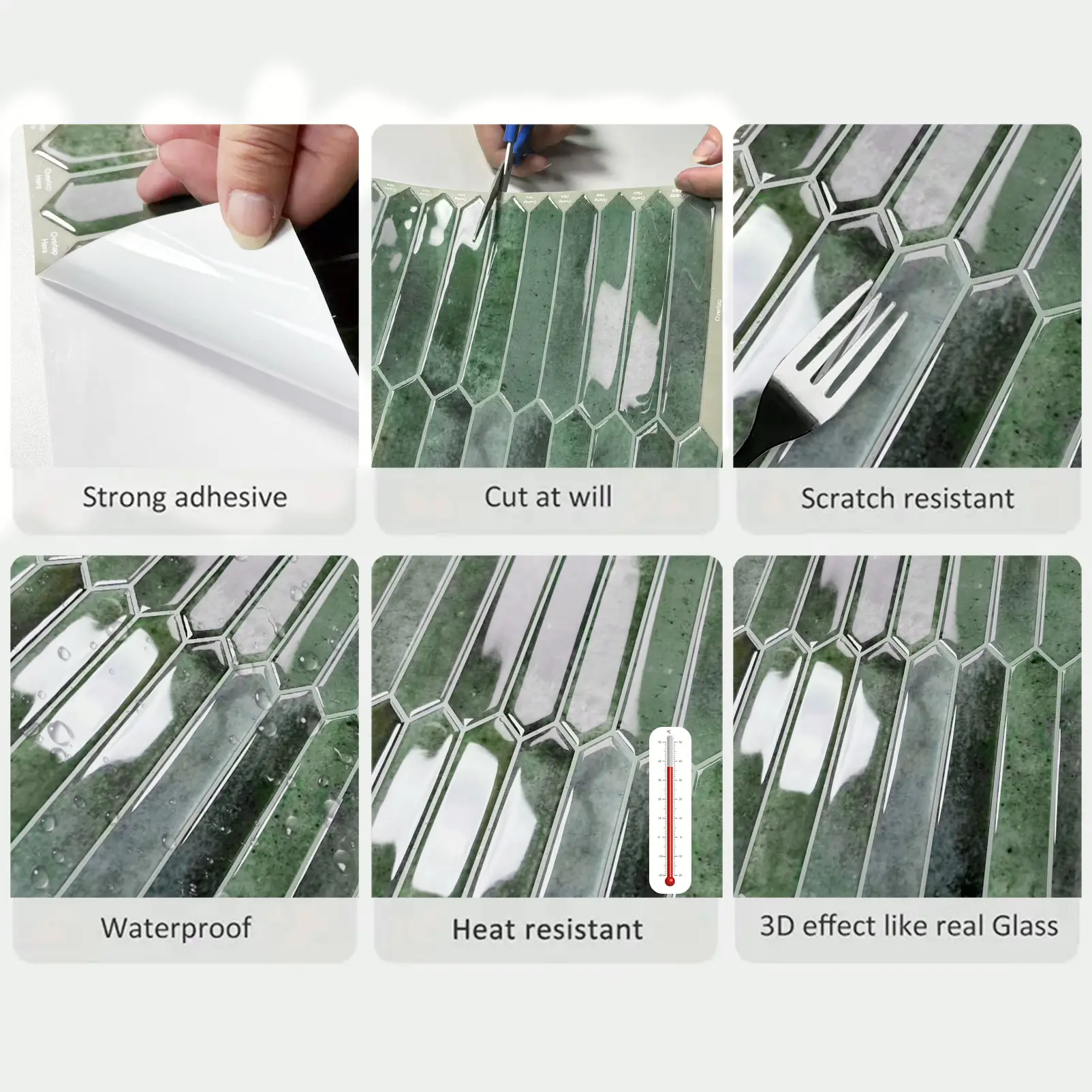 Upgraded Materials:** Constructed from a composite of a top-layer PU-GEL and a bottom-layer PET base, these tiles offer a realistic look and feel. The material is highly durable, resistant to cracking over time, and suitable for wall decoration in a wide variety of settings. Easy to Clean and Maintain: This thickened backsplash tile sticker features a host of protective properties—it is waterproof, heat-resistant, moisture-proof, oil-proof, and dust-proof—making daily cleaning and maintenance remarkably simple. Whether used in the kitchen, living room, laundry room, around a fireplace, inside an RV, or in the bathroom (excluding the interior of shower stalls), it provides long-lasting durability and reliable service.
