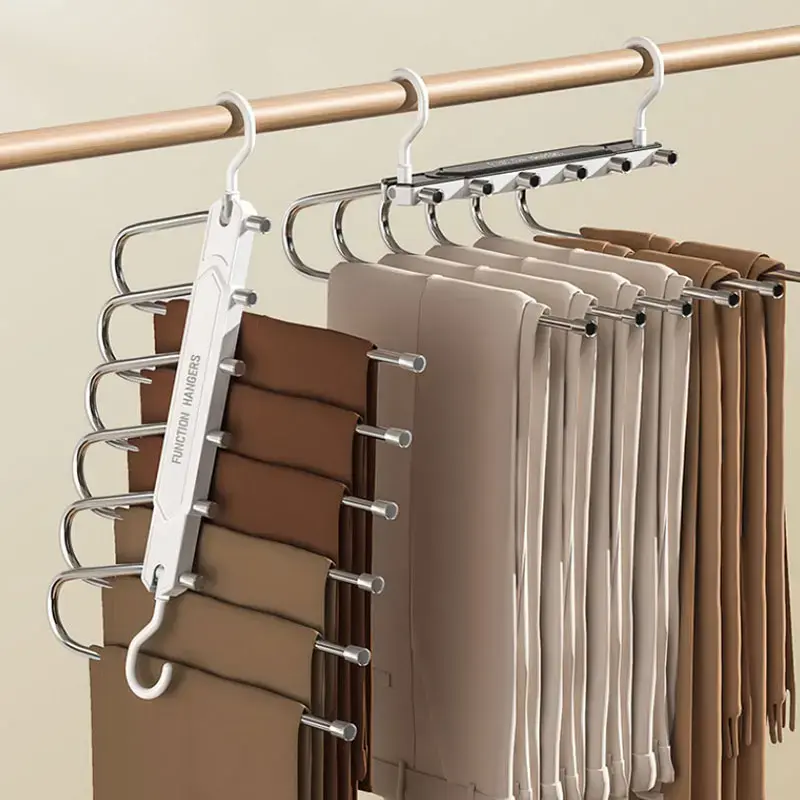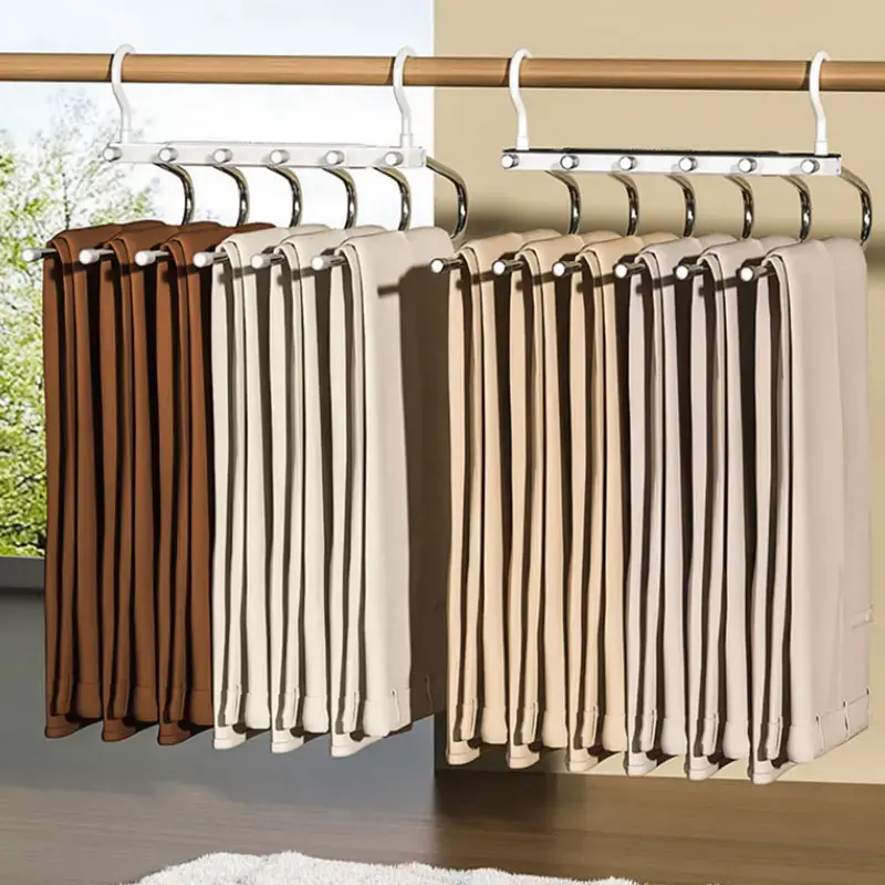 6 Layer Pants Hanger Space Saving Closet Organizer with 65mm Wide Spacing, Anti-Slip Multifunctional Pants Rack for Jeans Trousers Wardrobe