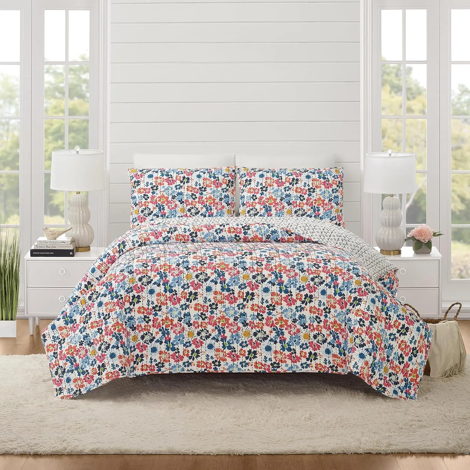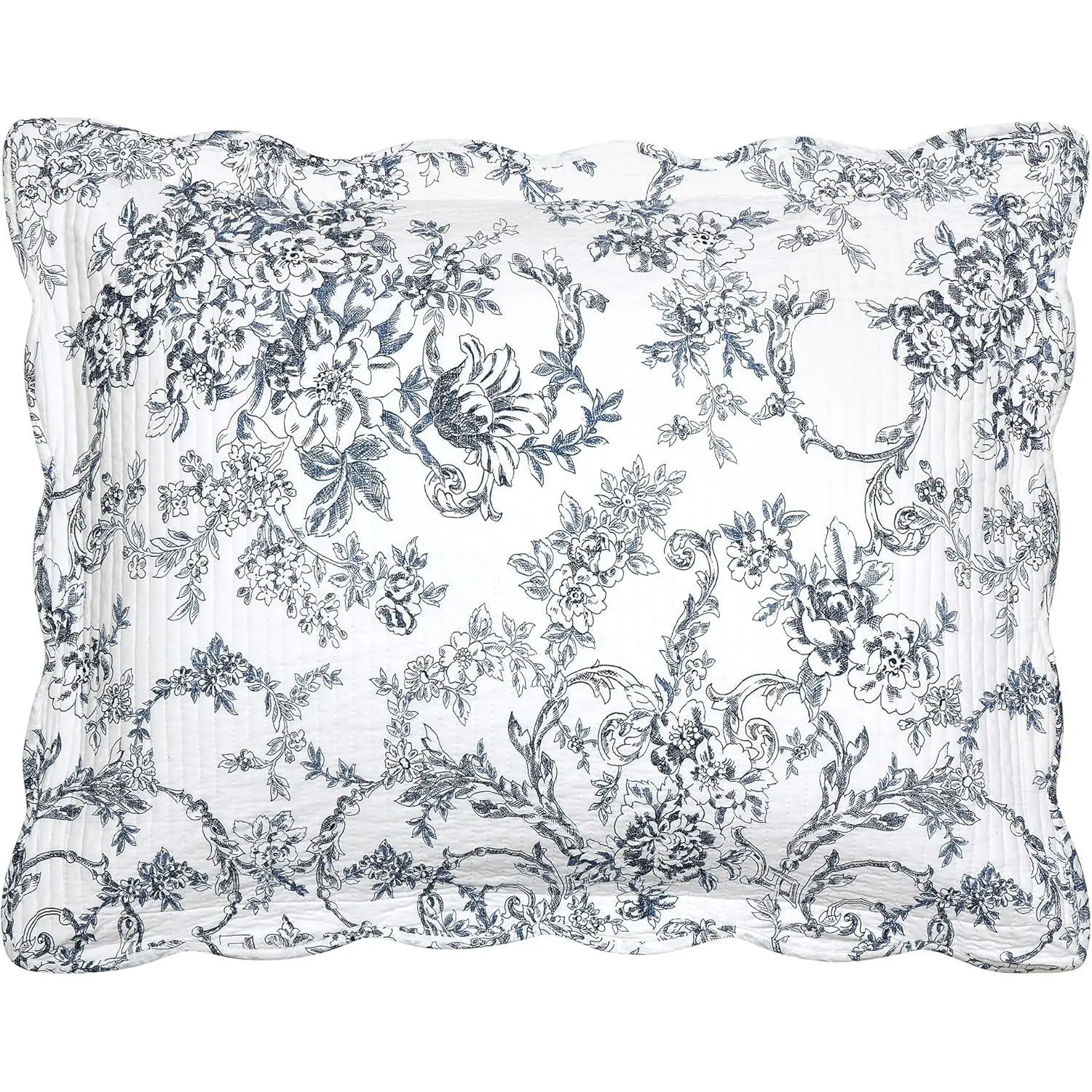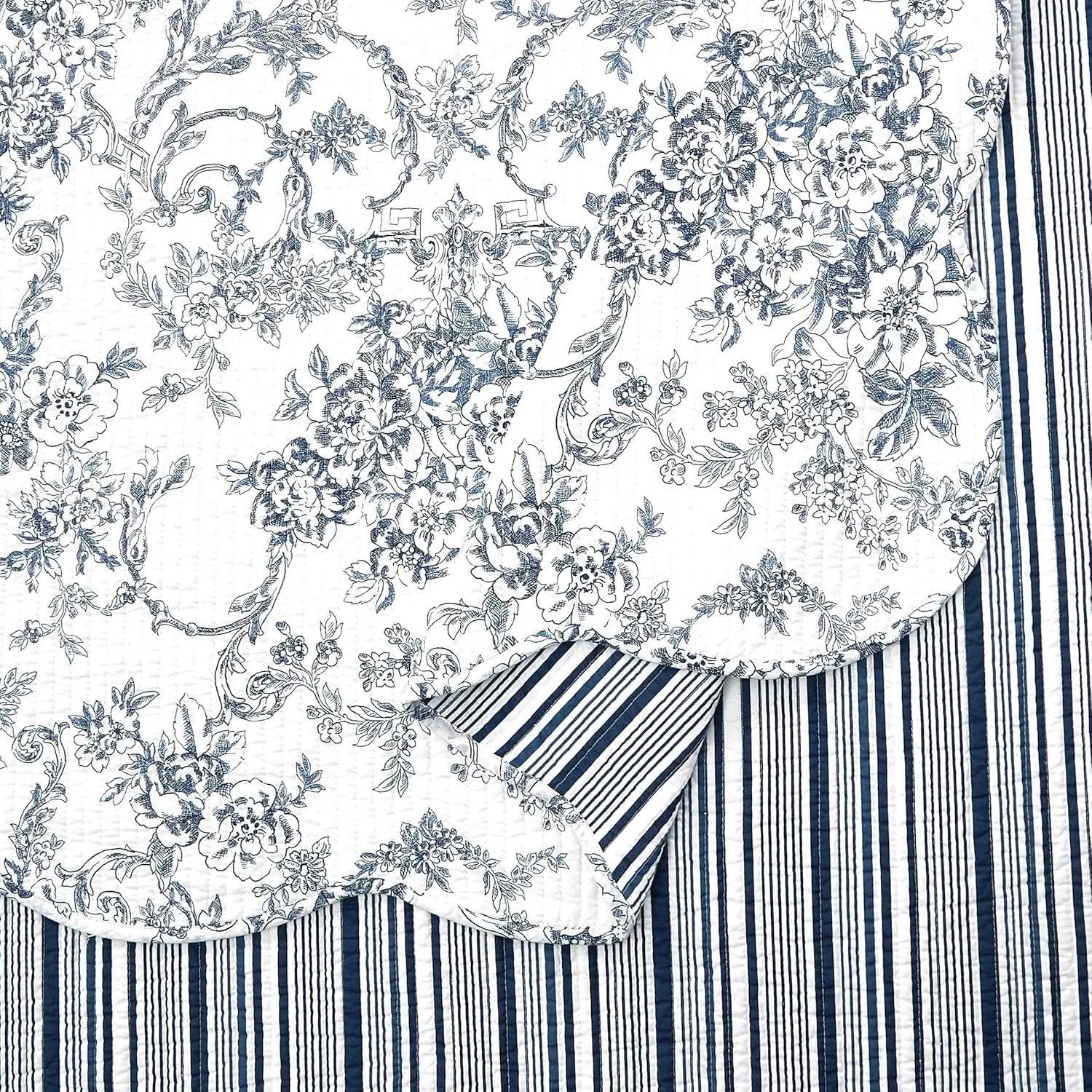 Toile 3-Piece Reversible Set - Lightweight Coverlet Set, Floral Vintage Quilted Bedding Set with 2 Shams, All, Full Queen Size, Blue | Breathable, Reversible, Lightweight