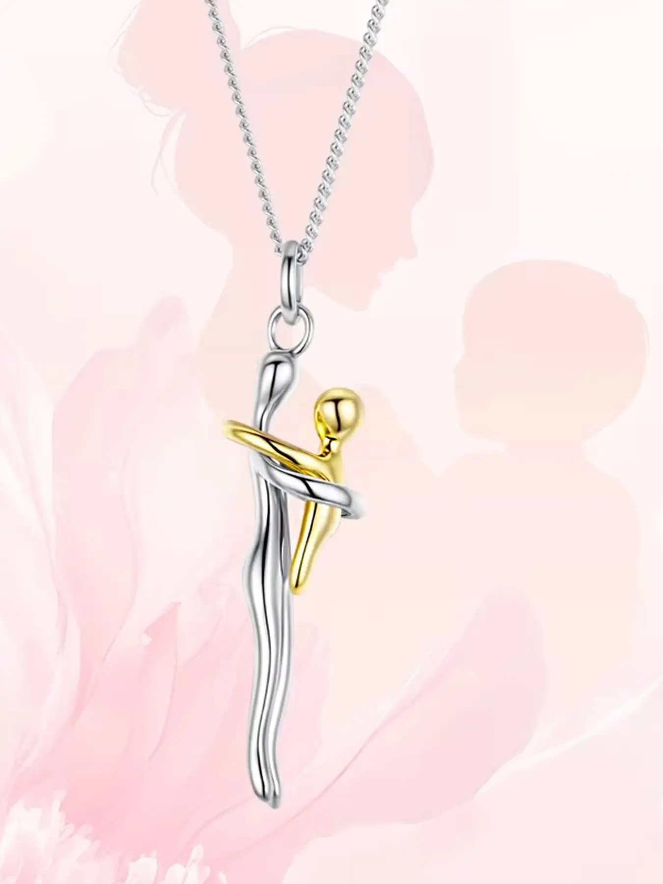 Two-tone hugging necklace, hugging pendant necklace, detachable mother and child pendant, DIY heart-shaped jewelry, a gift for new mothers, a mother's jewelry necklace suitable for special family occasions, a Mother's Day gift for mom.