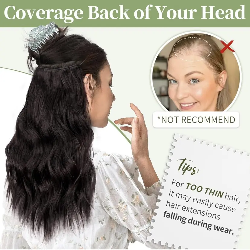 [Material & Benefits] Our clip-in hair extensions are crafted from high-quality, heat-resistant synthetic fibers that closely mimic the look and feel of real human hair. The hair texture is soft and smooth, free from any harsh chemical odors, and blends seamlessly with your natural strands to create a completely natural, effortless look once worn.