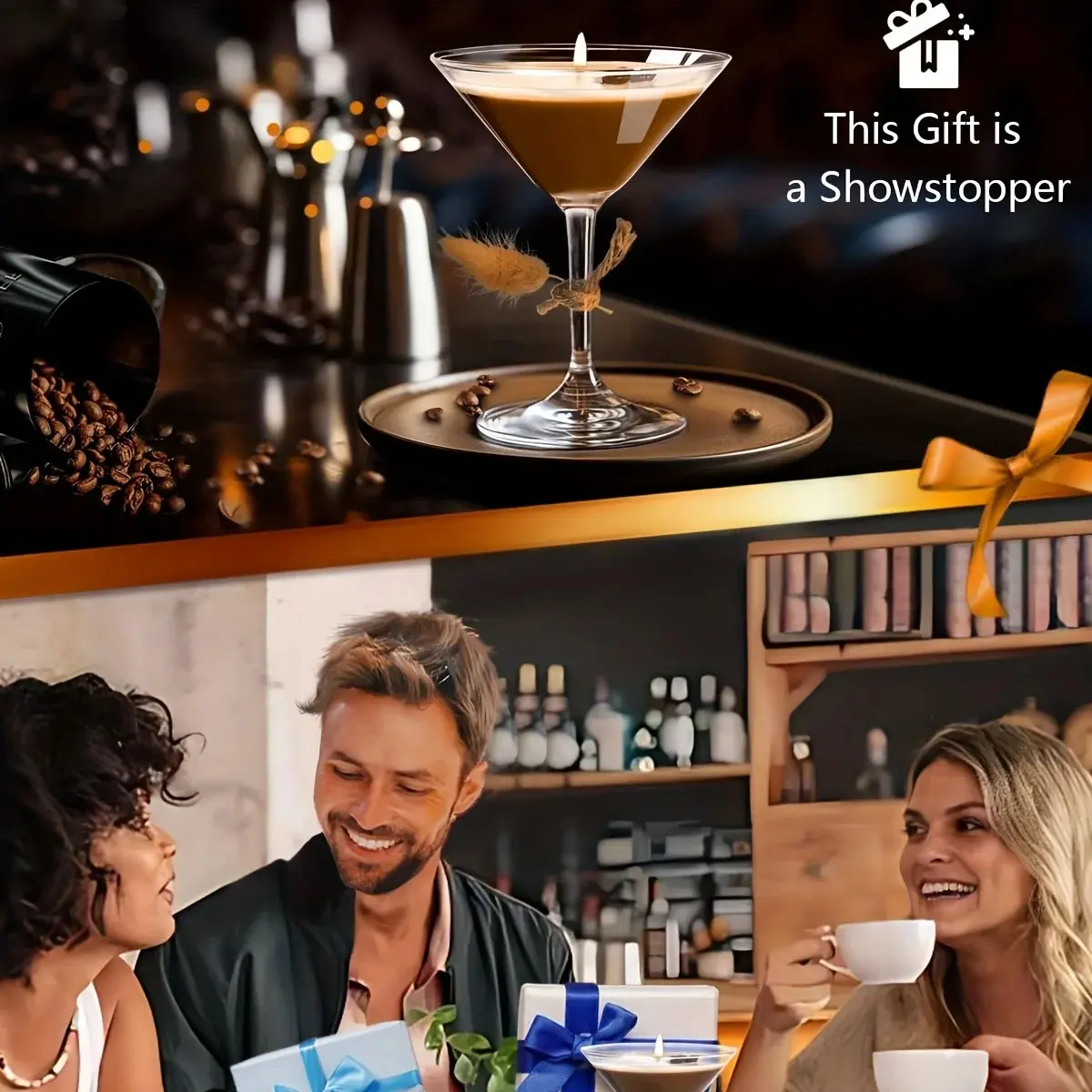 Coffee Martini Candle - Espresso & Martini Cocktail Scent with Coffee Bean Embellishments, Long-Lasting Soy Wax