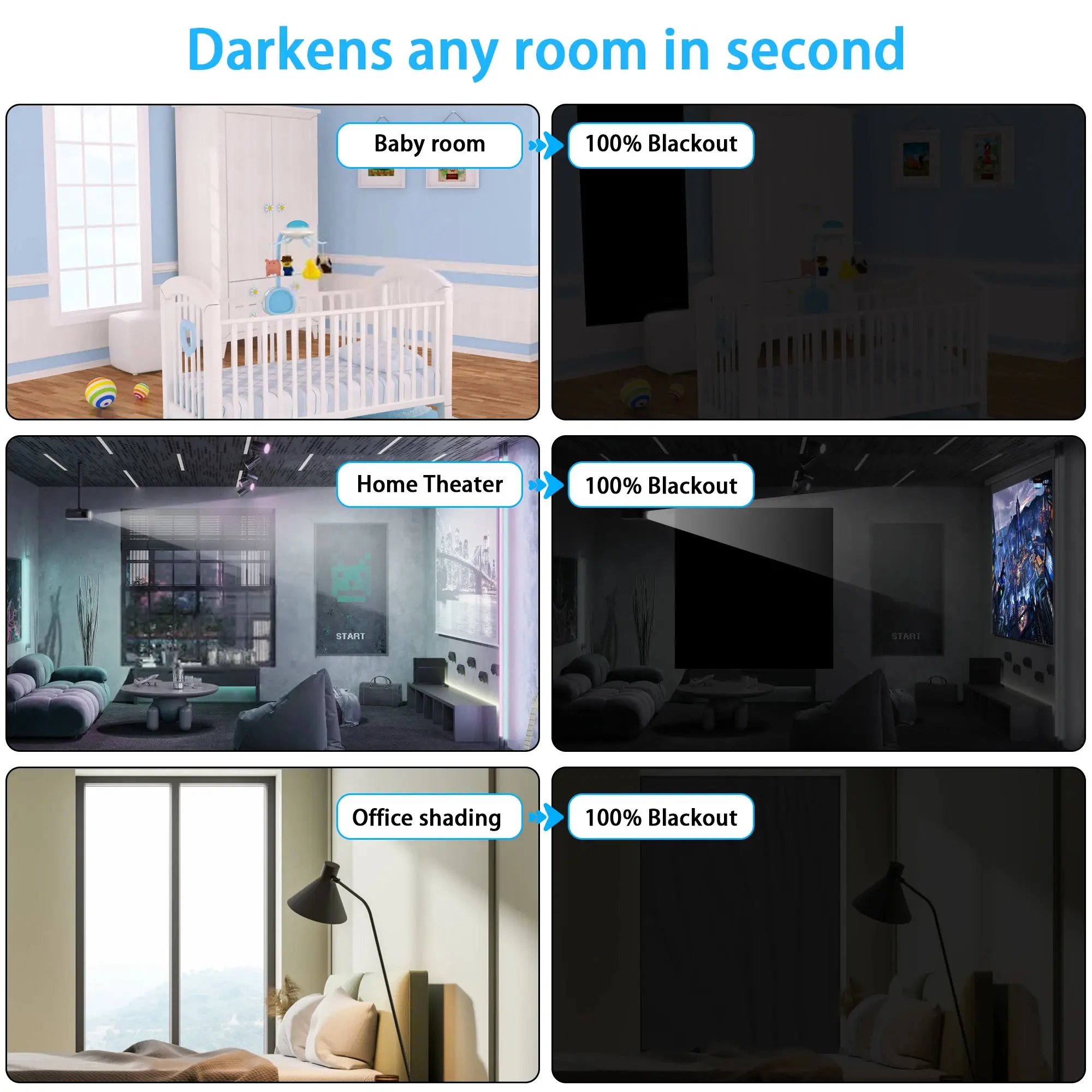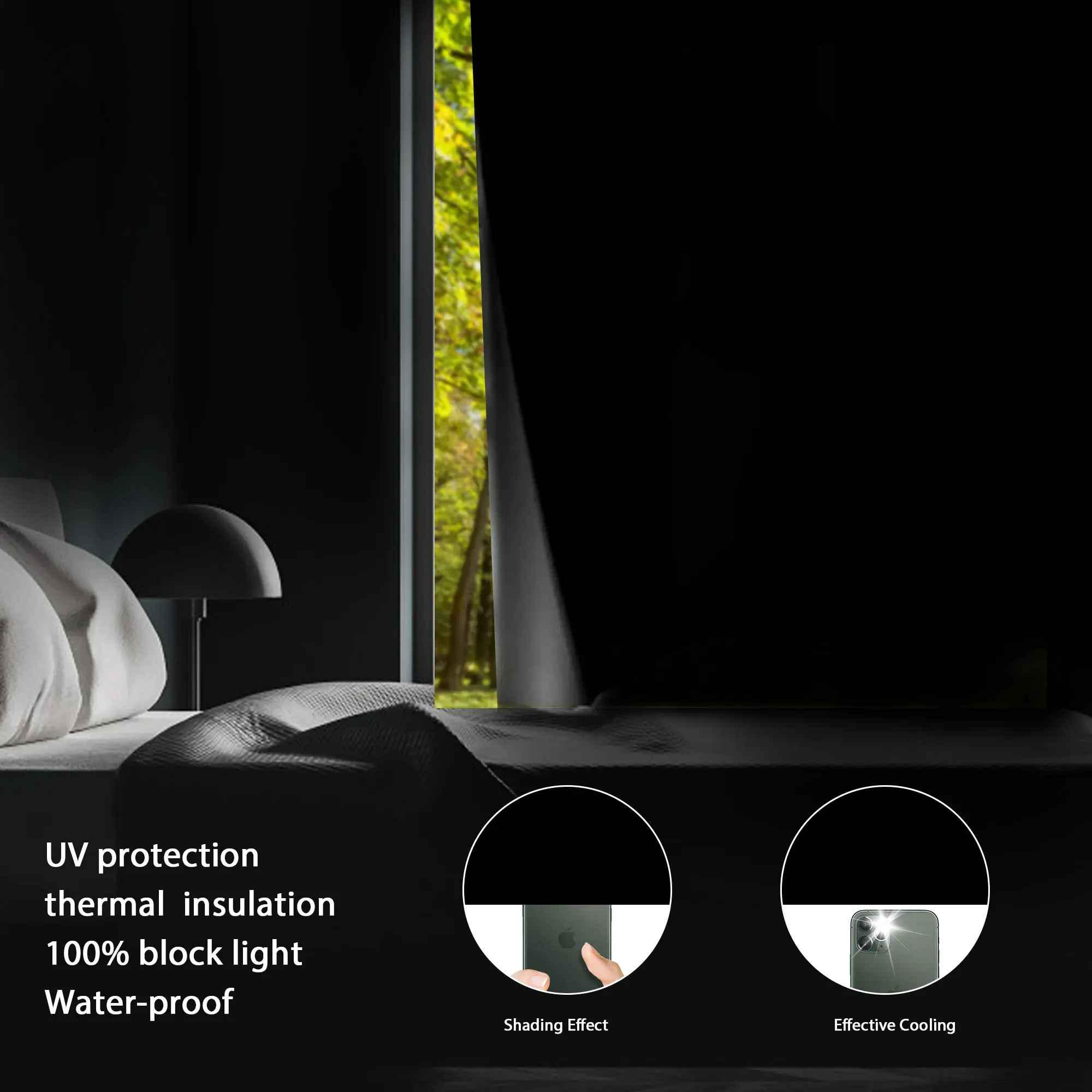 Portable 100% Black Out Curtains Shades for Windows Door Sun Protection Light Blocking Drapes Film No Drilling Travel