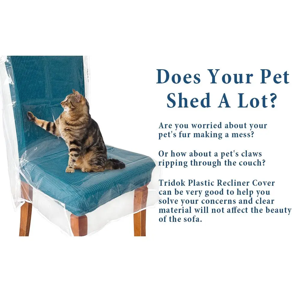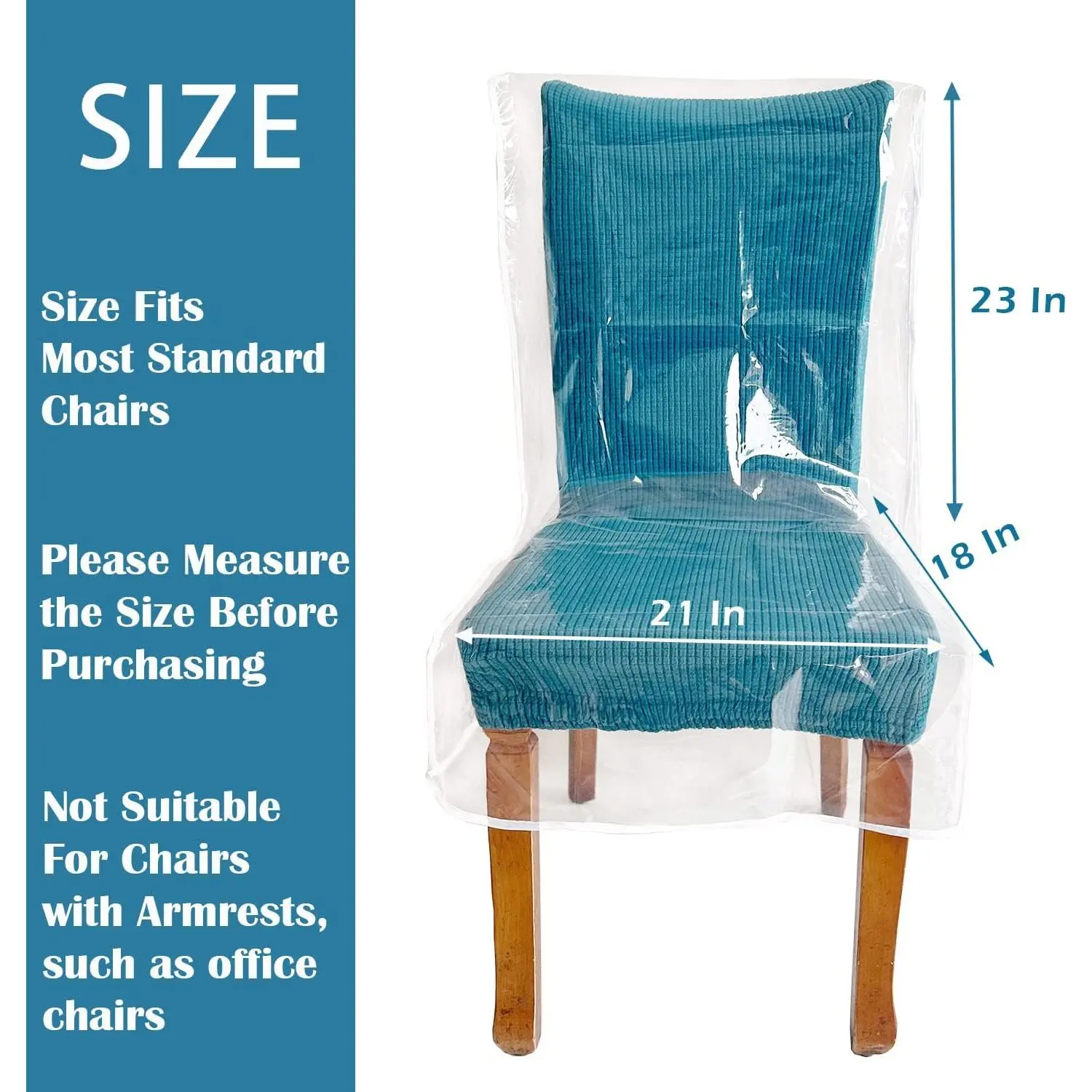 Plastic Chair Covers for Dining Chairs - No-scratch/dust/spill/pet hair and claws design, prevents wear and tear, fits most chair sizes, protects against spills and stainsPlastic Chair Covers - Heavy duty materi clear vinyl covers, durable and reusable, waterproof and stain-proof, protects upholstery, fit for home and office chairsChair Covers for Dining Chairs - Please make sure to measure your chair before purchasing.Measures approximately 21 Inches Long x 18 Inches Wide x 23 Inches High.Accommodates chairs with seatbacks up to 25 InchesPlastic Dining Chair Covers- Easy To Clean- Conveniently PE plastic more softer than PVC.Simply wipe with a damp cloth and let air dry before using or storing, Suitable for indoor and outdoor useClear Chair Covers- Based in beautiful Vermont, Drihara has offered customers unique products with a 30-day easy return policy.Any quality problems please tell us, we'd refund you