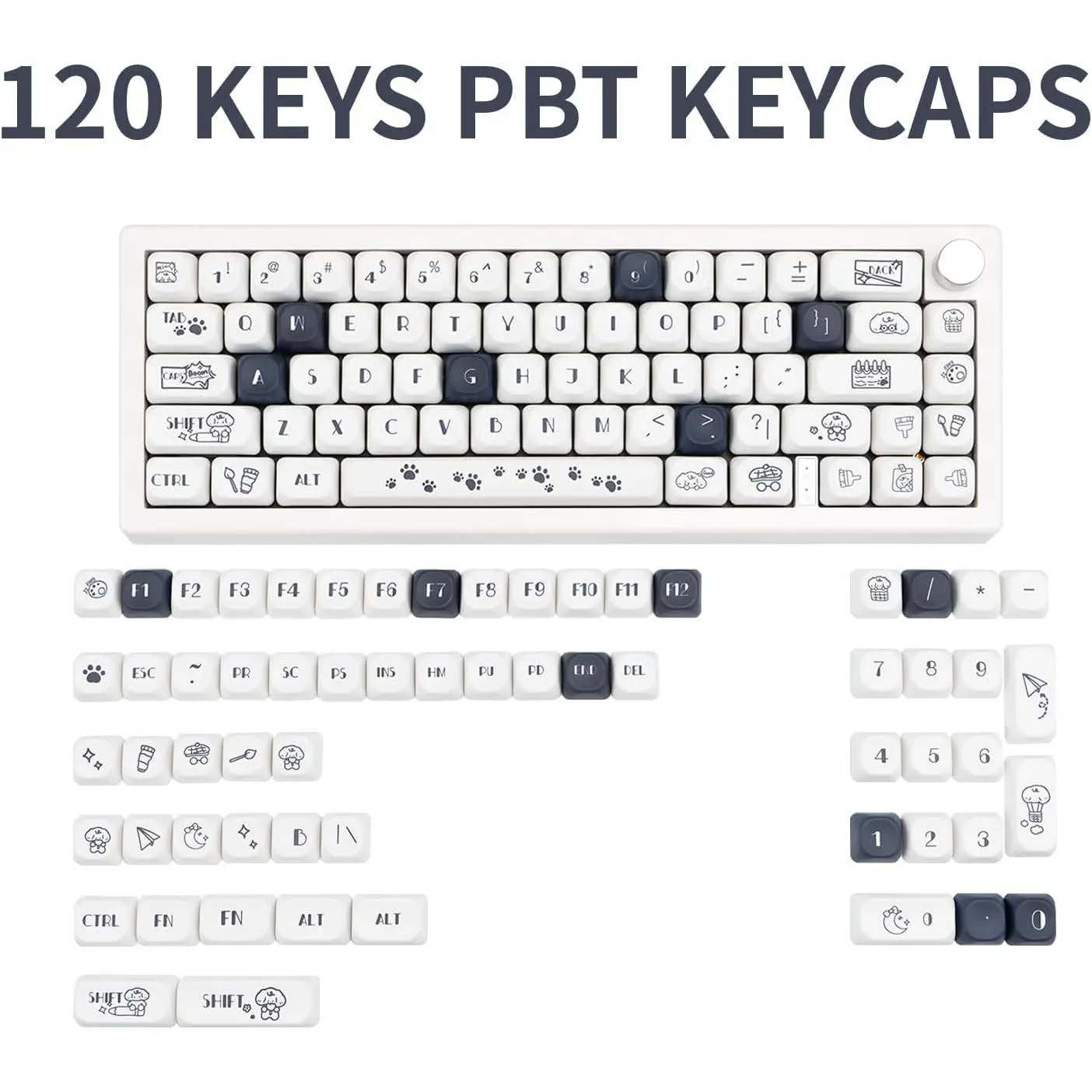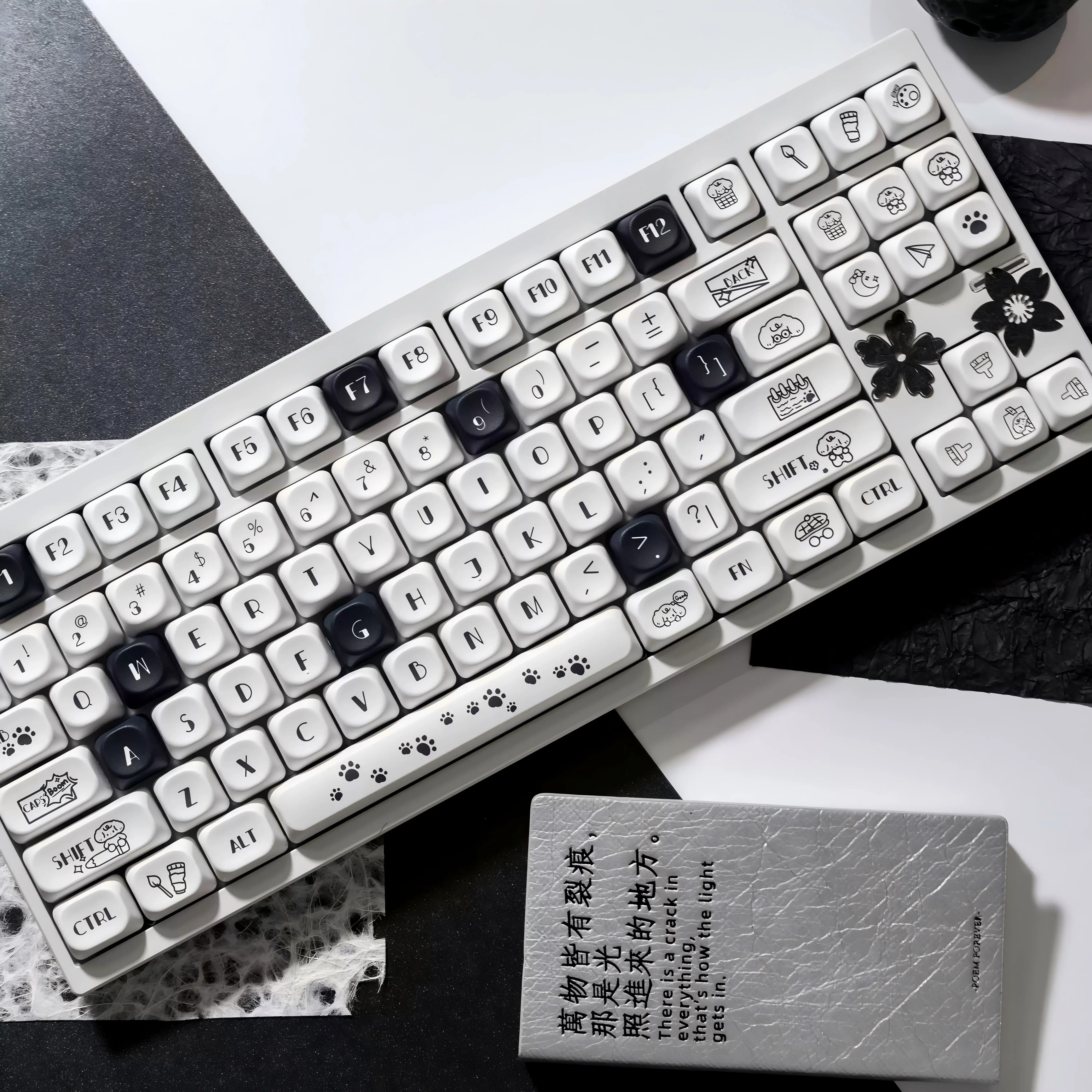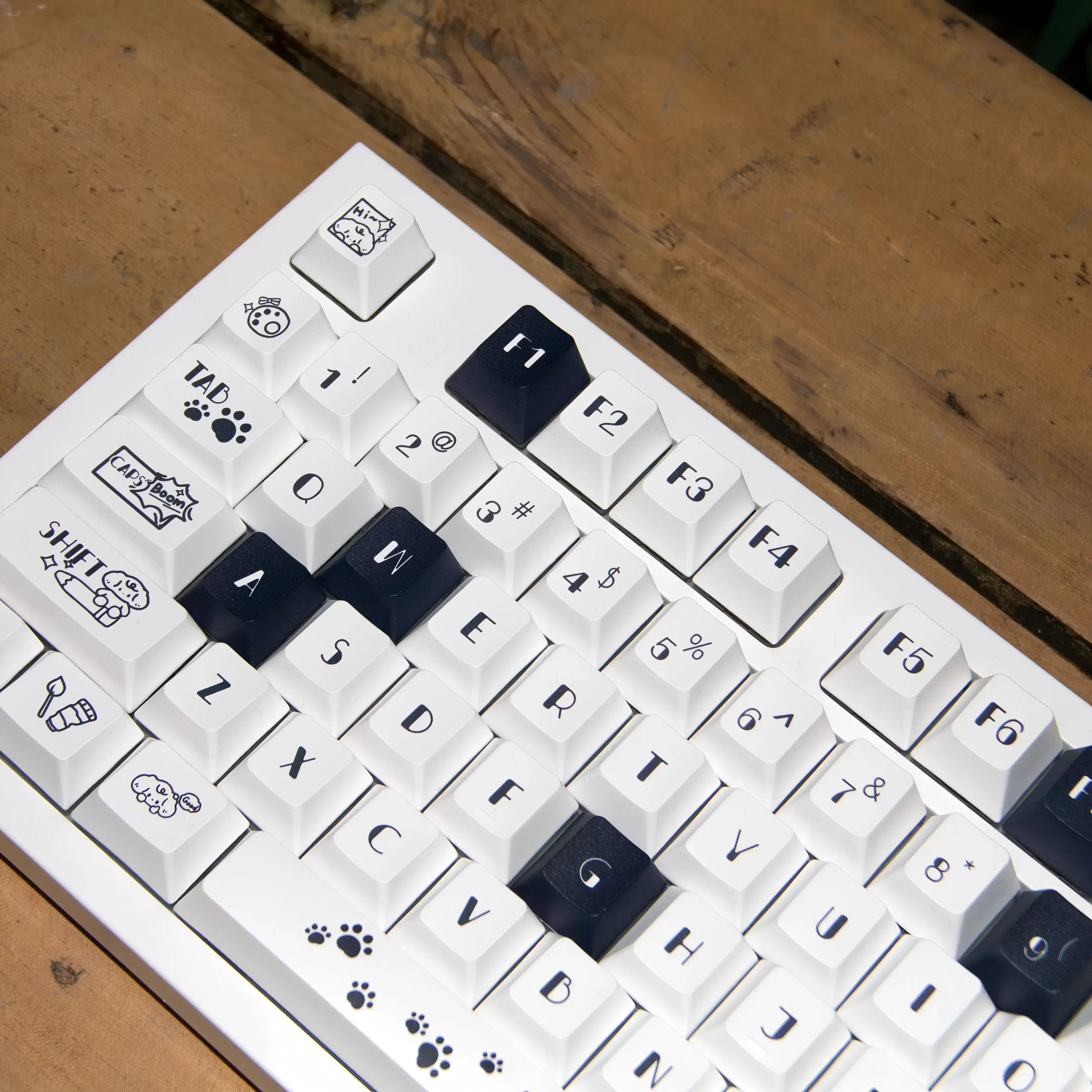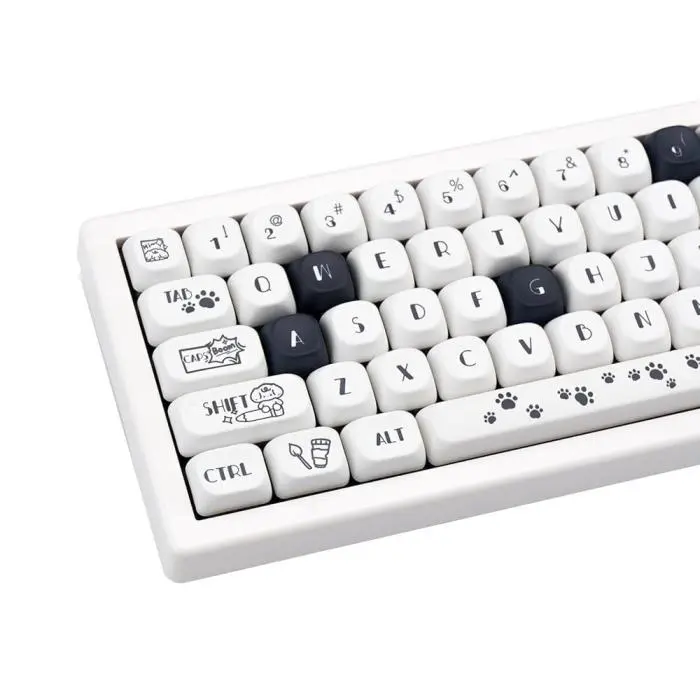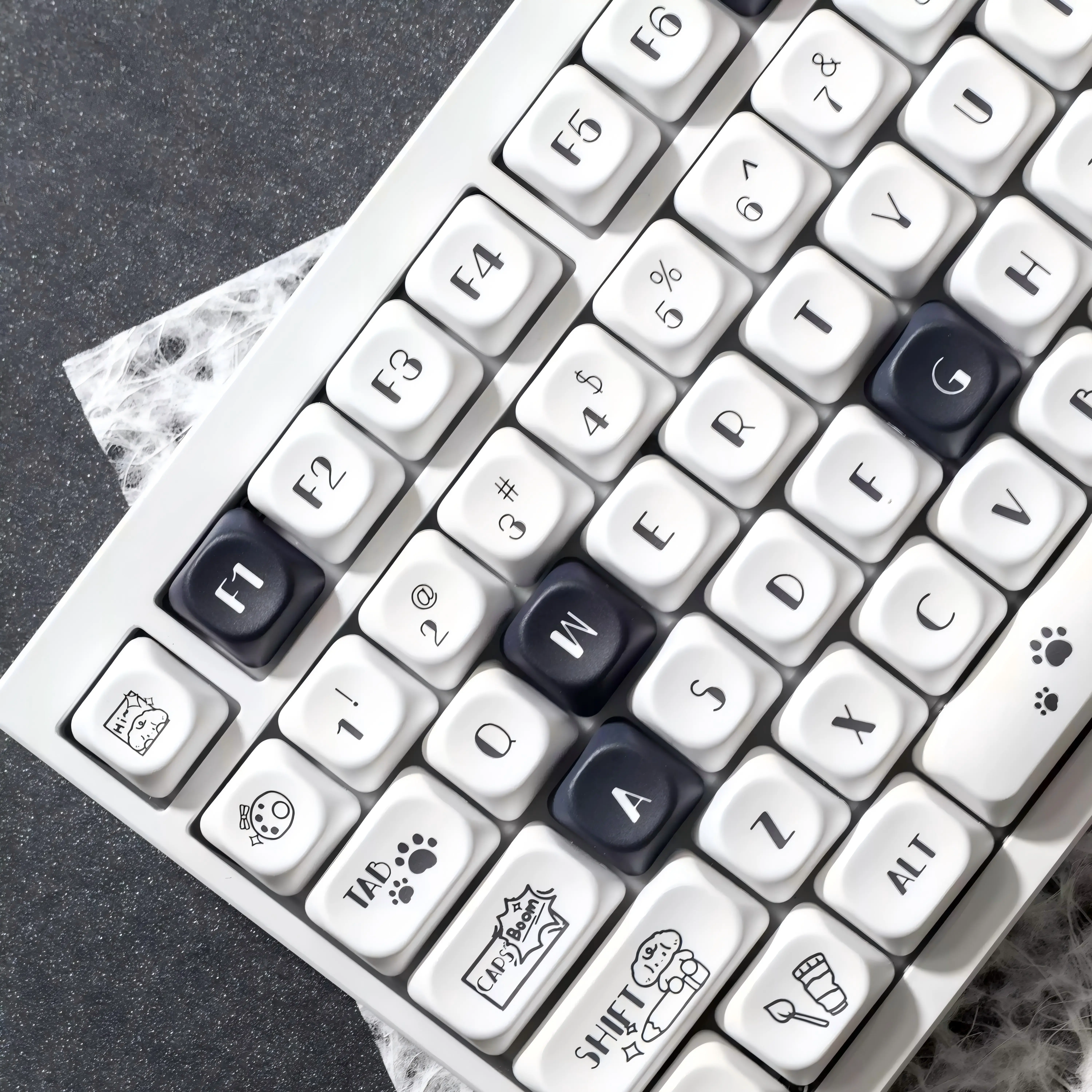 This black & white puppy comic-themed keycap set offers a minimalist, stylish look. It features a variety of adorable puppy designs, making typing feel like cartoon puppies are jumping across your keyboard.
