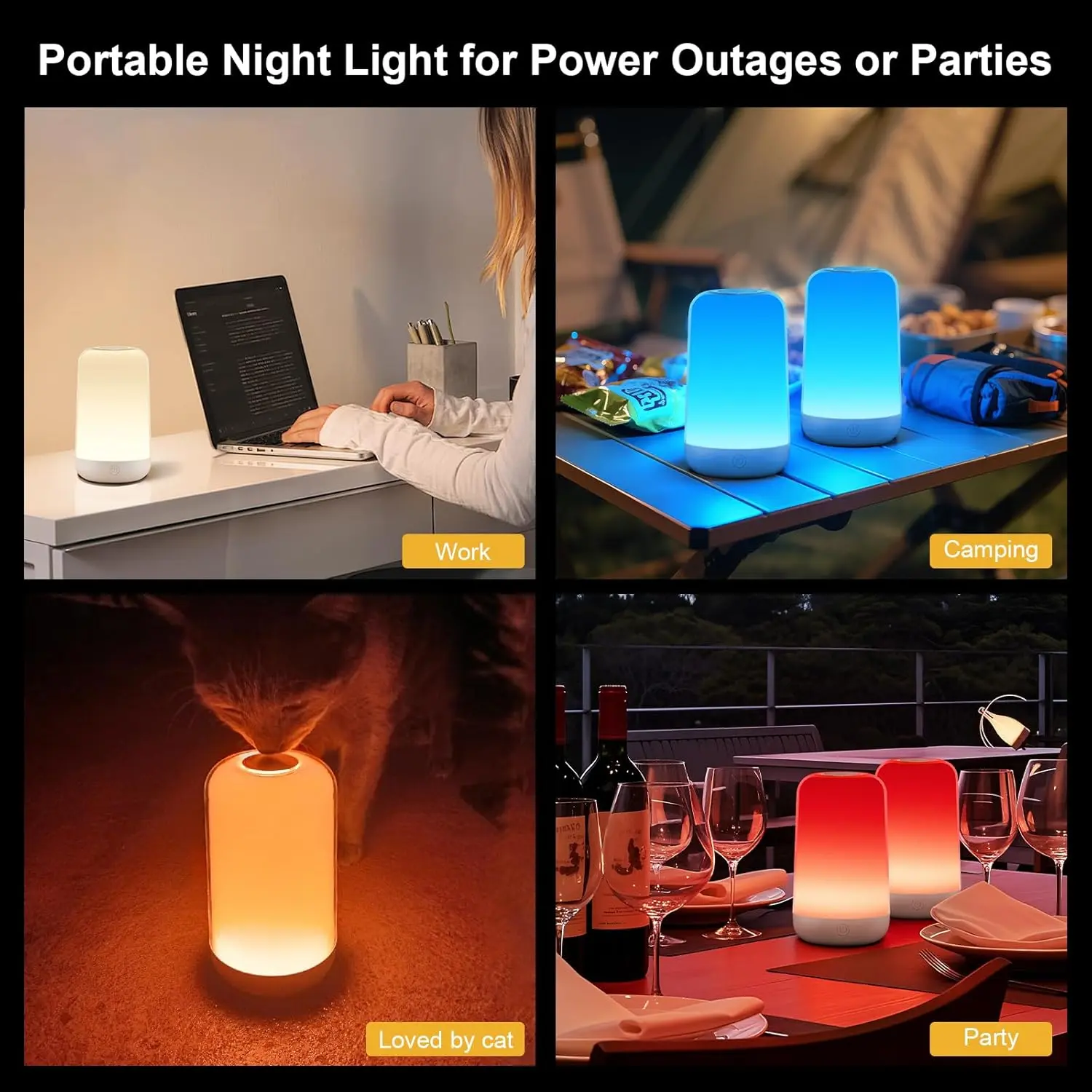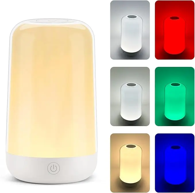 FRIDEKO HOME RGB Touch Bedside Lamp for Nightstand 4 Dynamic White Tones Dimmable Mood Lighting 18-Hour Battery USB-C Charging Bedroom Living Room Nursery Kids Adult