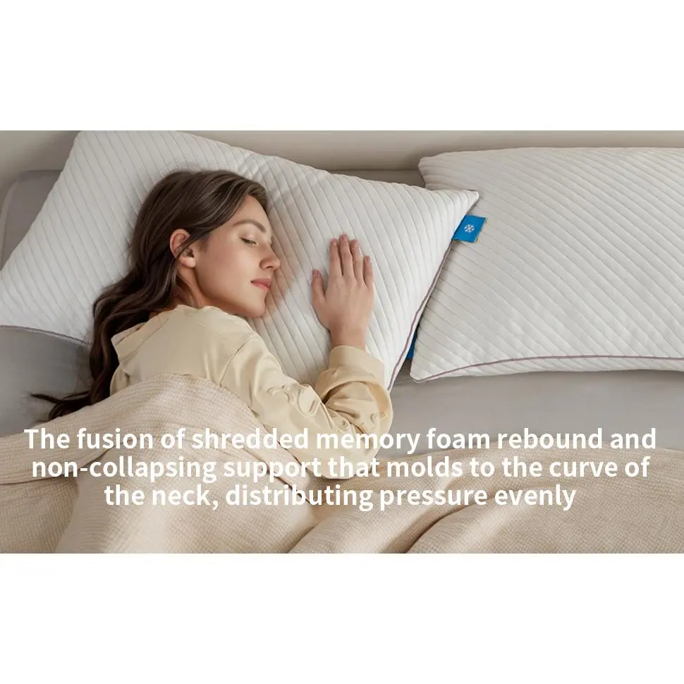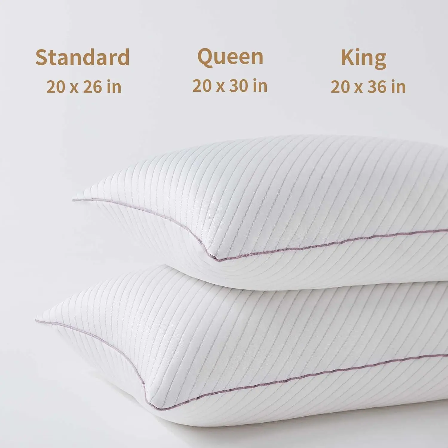 Support:The new shredded memory foam fillings provides excellent resilience and support.We queen pillows set of 2 also add soft microfiber to the fillings,The bed pillows combines support and softness with comfort.It is also long-lasting, ensuring you get the support you need for years to come,Say Goodbye to Flat.Cooling & Soft Touch:We use different materials for pillowcase A/B sides.Warm soft fabric on A-side, cool ice silk on B-side.Breathable on both sides.Zippered white pillowcase, easy to remove and wash.Suitable for Sleeping Position:Shredded memory foam pillow can better fit the curve of the neck, evenly support the neck, spread the pressure.relieve neck and shoulder pain.Soft and supportive.Whether you sleep on your back, stomach, or side sleeper, these pillows are suitable for sleeping positions, ensuring a restful night's sleep.Adjustable:Queen pillows, size is 20 x 30 inches.We have filled it with ample shredded memory foam for easy adjustment.If you feel it is too high or too firm, you can remove part of the filling to make the pillow lower in height and become softer and fluffier to fit your sleeping position.Buy with Confidence:The pillows is vacuum compressed packaging, after removing the pillow, we recommend waiting 24 hours before using it to allow the pillow to regain its fluffy and fullness. Don't worry if there is a slight odor, this is normal for new foam and will slowly subside after a few days.