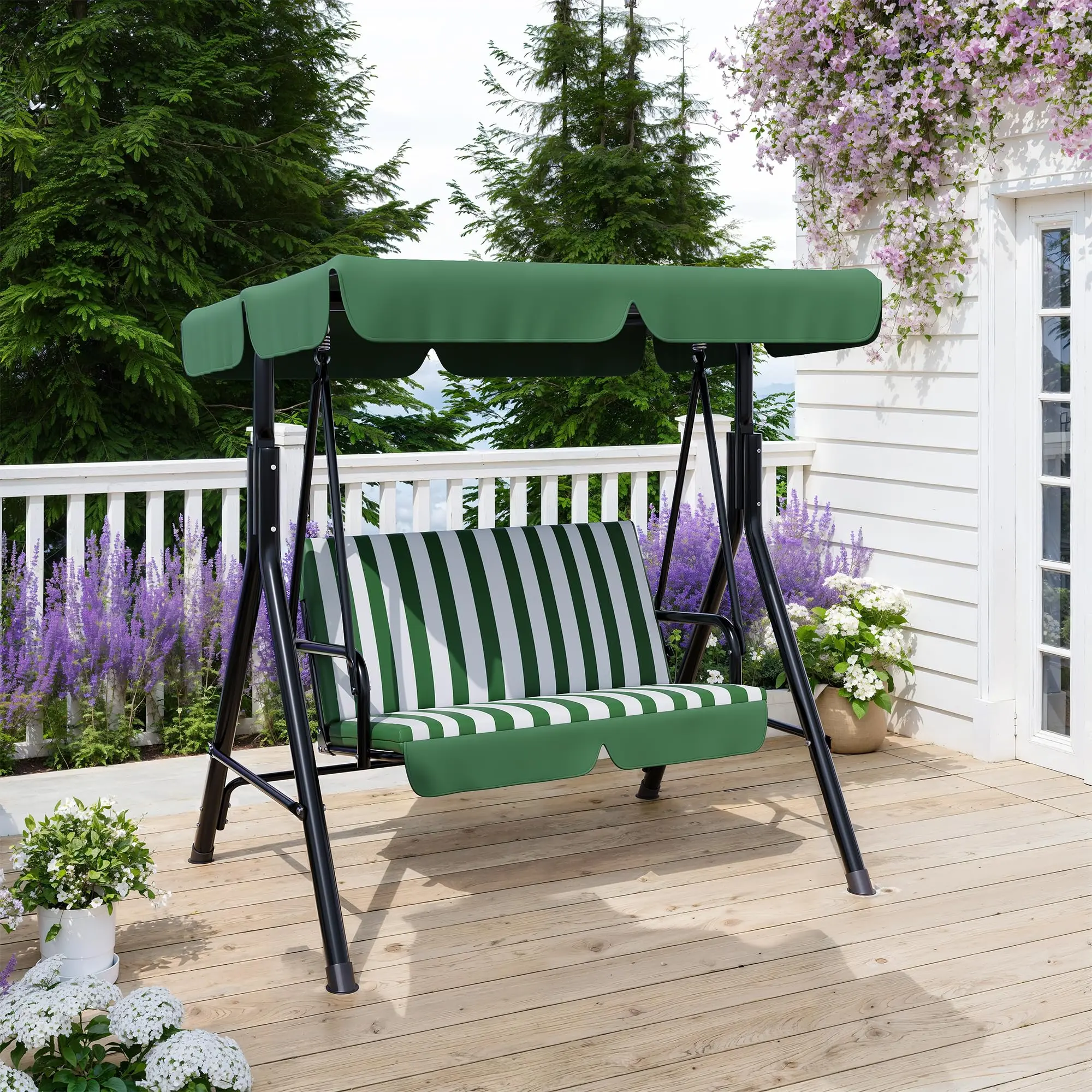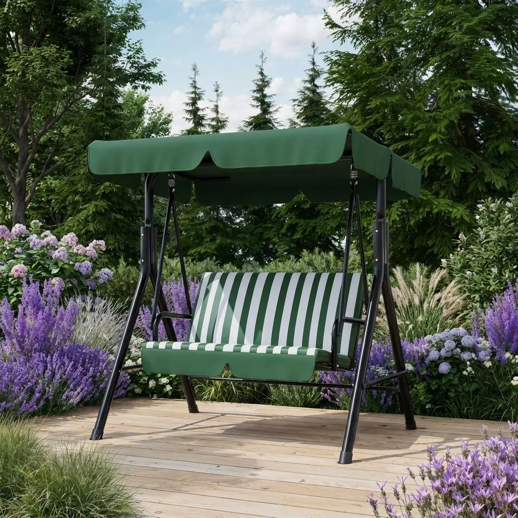 Enjoy reliable outdoor relaxation with this sturdy 2‑person porch swing, built with thickened powder‑coated metal poles for strong wind resistance, high load capacity, and rust‑resistant durability. The triangular frame structure improves overall balance and stability.