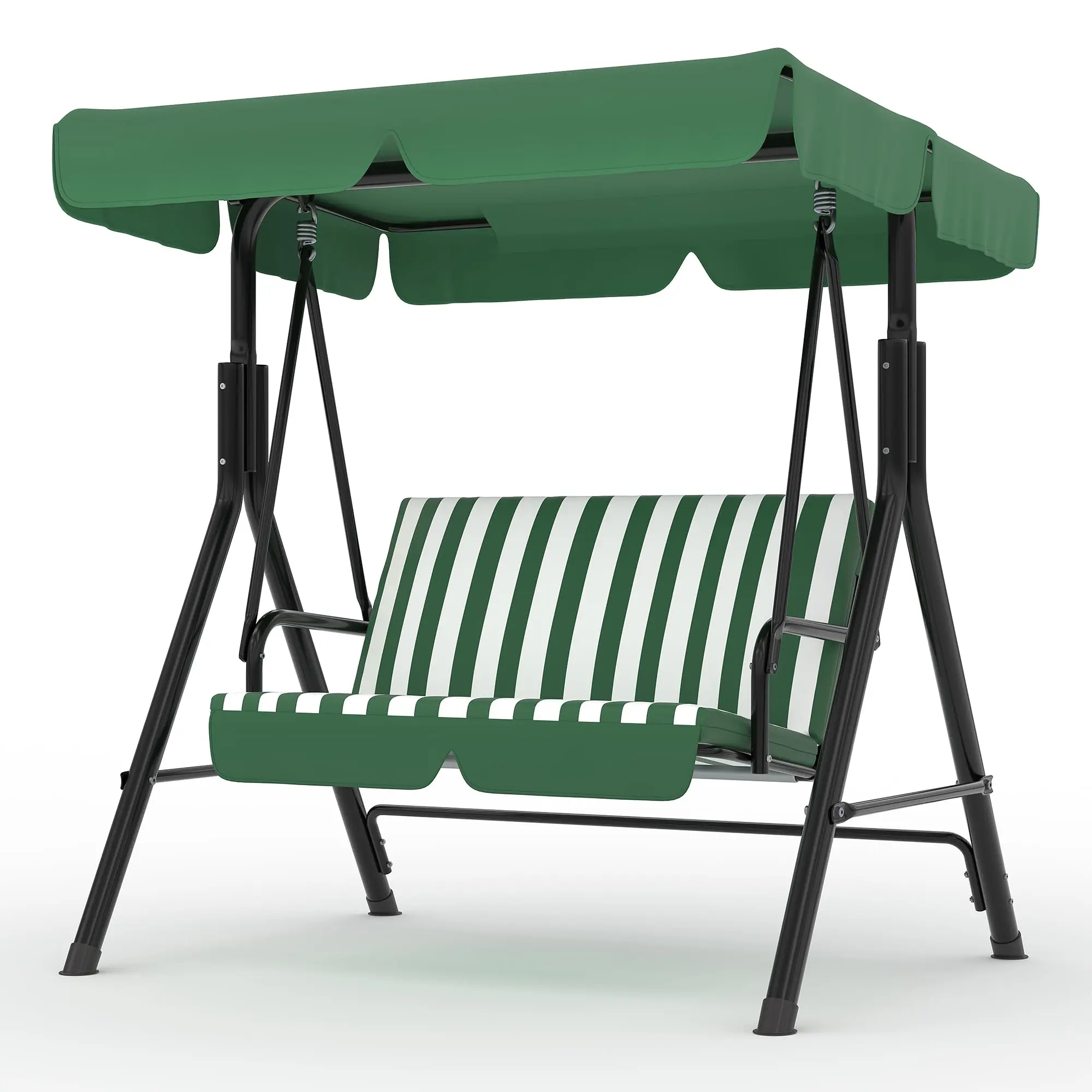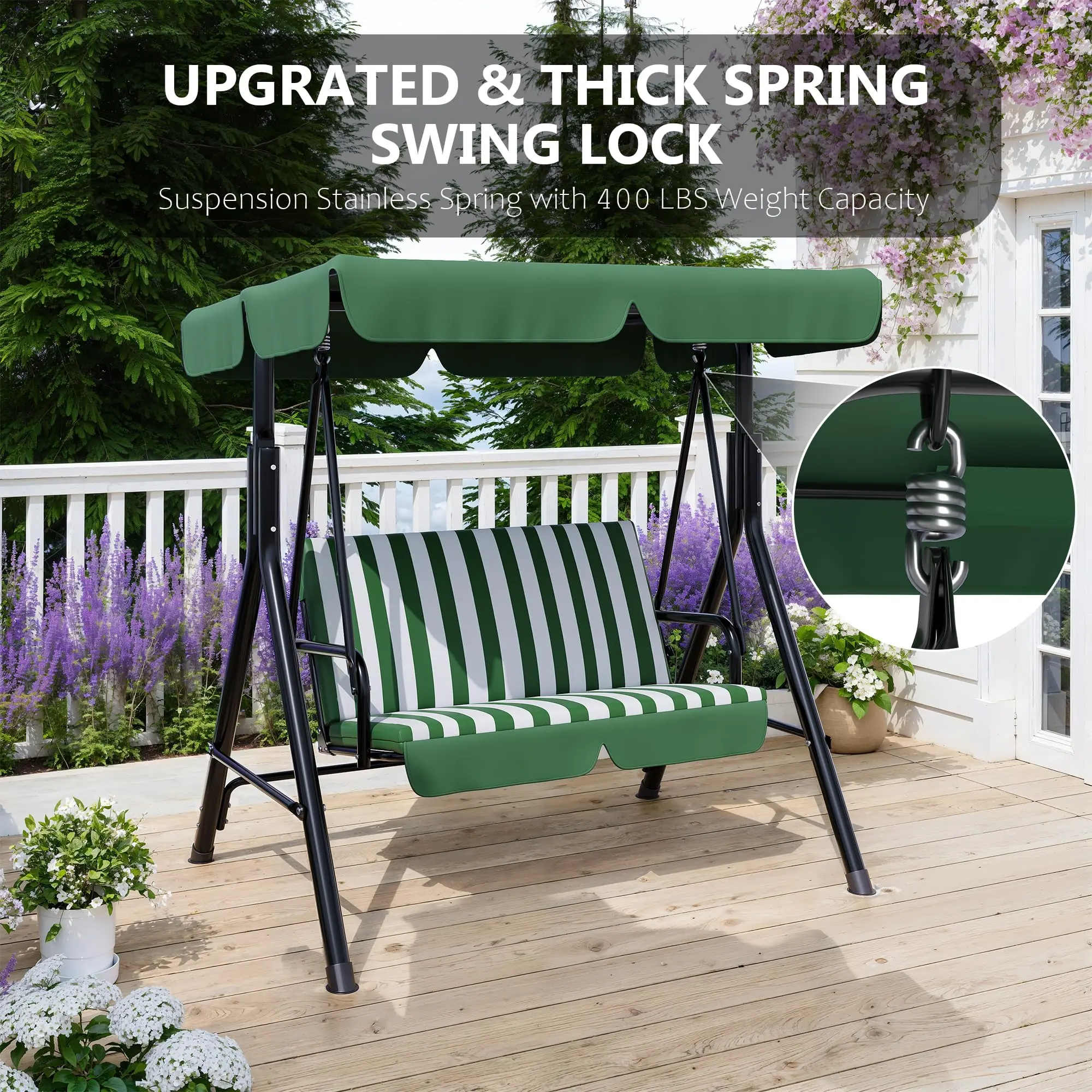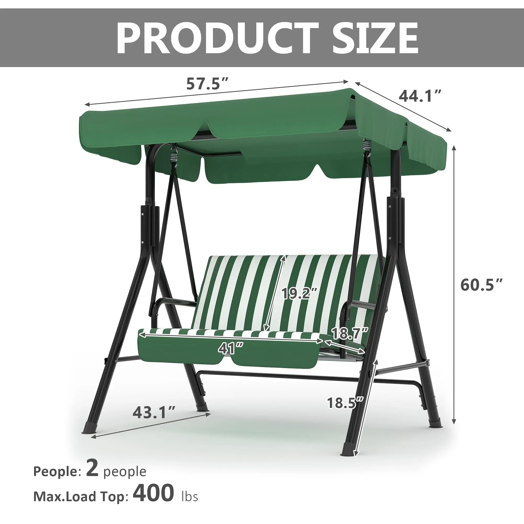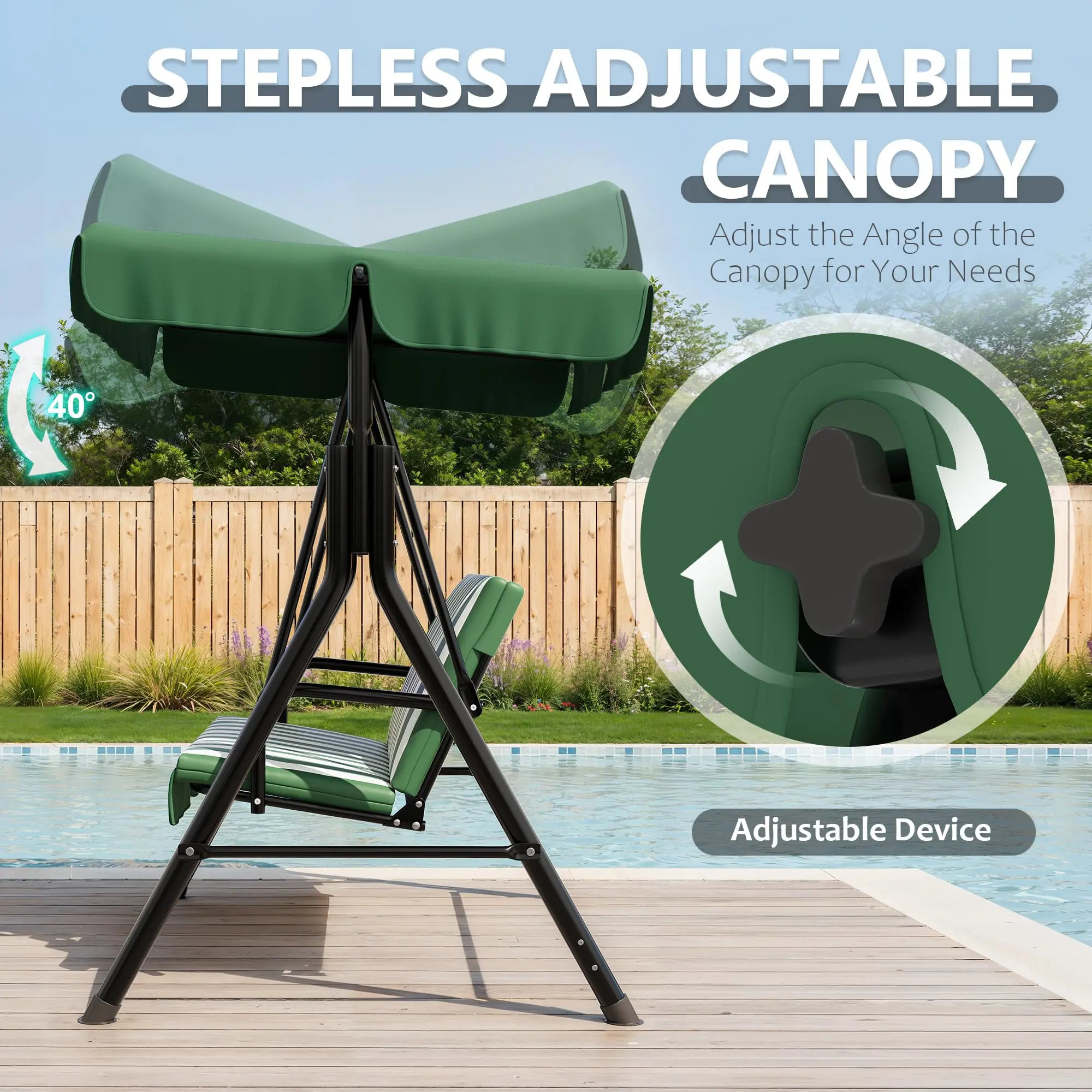 2‑Person Outdoor Porch Swing with Adjustable Canopy – Heavy Duty Metal Frame, 600 lb Capacity, Patio Swing Chair with Stand for Garden, Backyard & Poolside