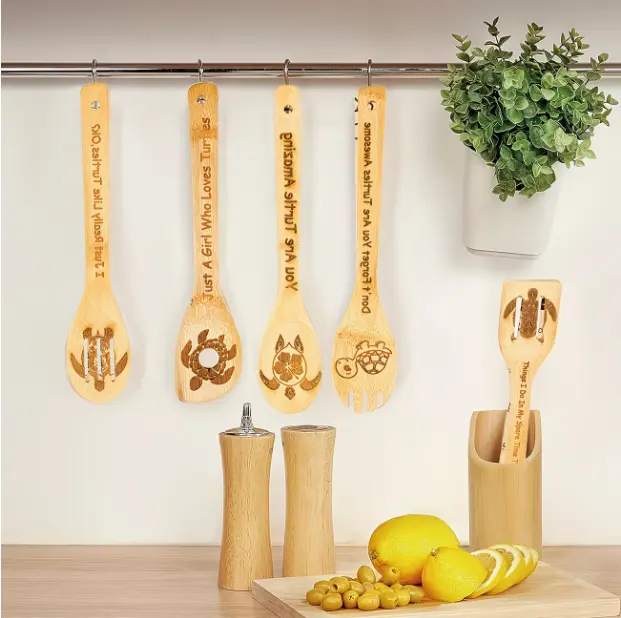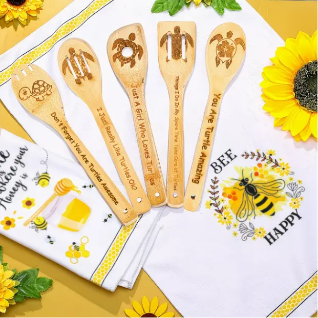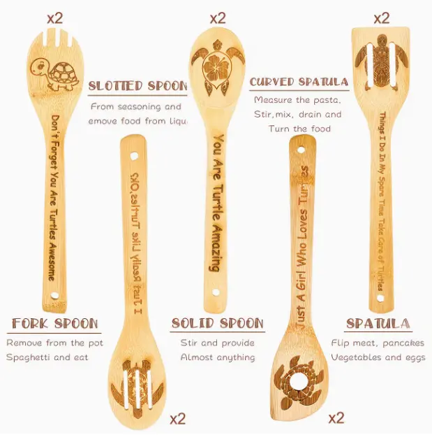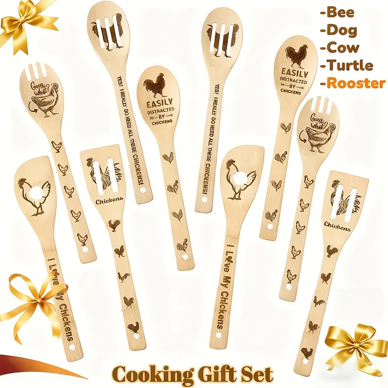 This bamboo wooden spatula kitchen utensils set is the perfect solution tailored just for you. The natural bamboo material won't scratch the cookware, the retro farmhouse style, carved rooster pattern, brings the farmhouse atmosphere, it can be used as both cooking tools and kitchen decoration.