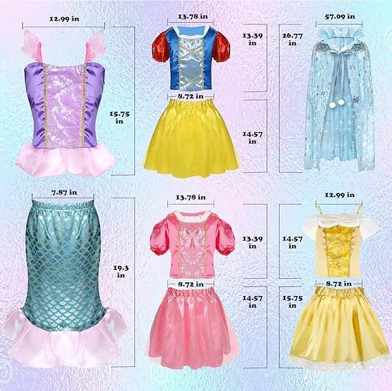 ·Mix & Match Princess Dresses: Spark creativity with versatile dress up clothes for girls! Your little one can mix and match the 4 tops and 4 skirts to create countless beautiful princess dresses looks. It's the perfect princess dress up set to design a unique princess costume for girls every time they play.