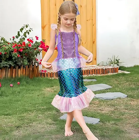 ·Royal Accessories for Full Transformation: No detail is missed! The set comes with a glittering crown, elegant earrings, a magical ring, a sparkling wand, and a charming mermaid purse. These accessories complete the enchanting princess dress transformation, making every playtime special.