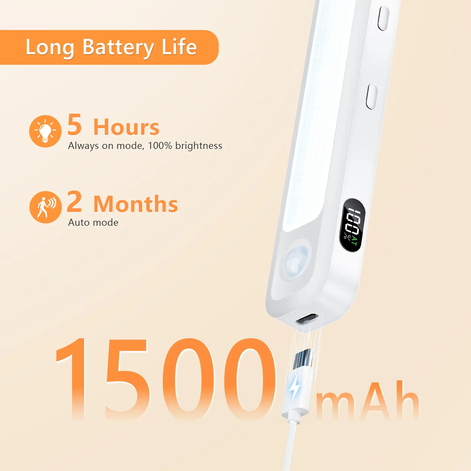 The 1500mAh battery includes a power-level display for peace of mind. Charge fully in 1.5 hours, then enjoy up to 5 hours at max brightness or 40 hours on the lowest setting—no cords, no hassle.