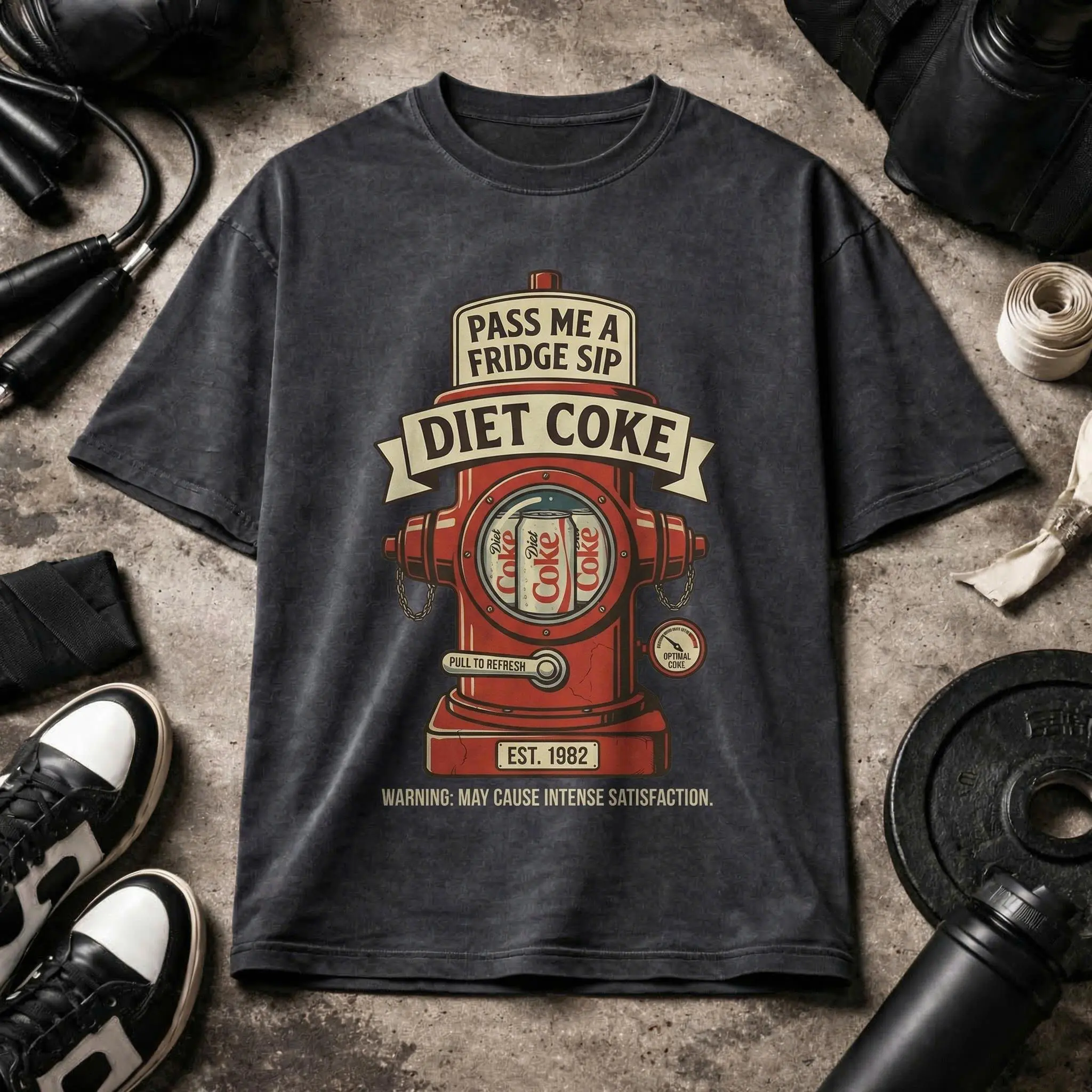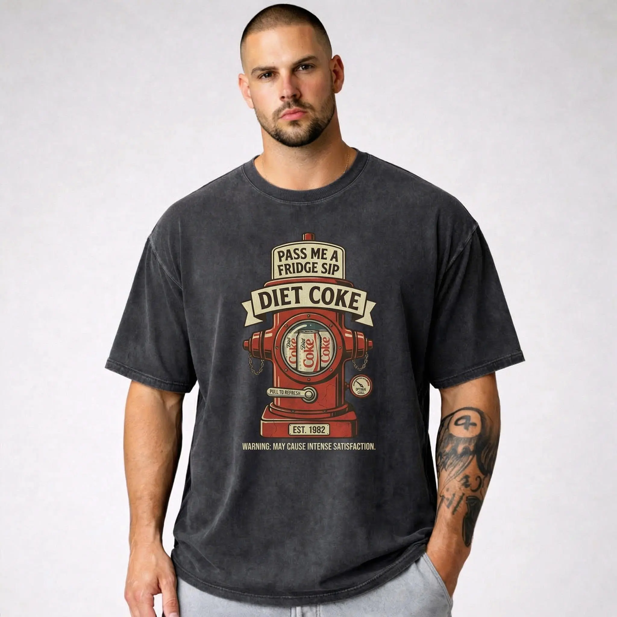Pass Me A Fridge Sip Wash T-shirt 100% Cotton, Unisex, Diet Coke Lover Gift, Retro Soda Drink Wash T-Shirt, Quirky Caffeine Addict Tee