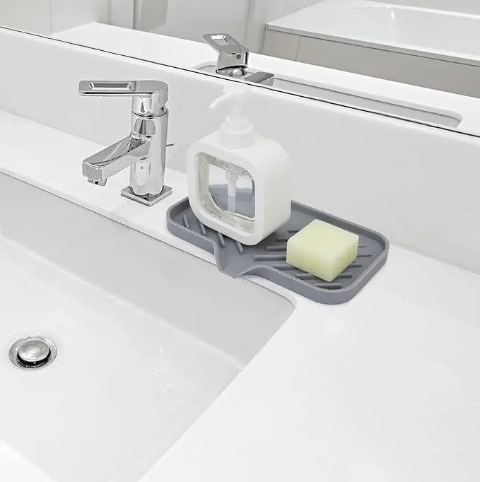 Simply place your soap or dispenser in the tray. Its compact design fits seamlessly into your kitchen or bathroom. No more cluttered counters. Enjoy a more organized and efficient space with this practical tray.