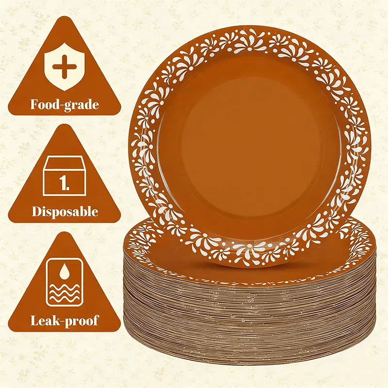 This brown disposable plate is the perfect solution tailored just for you. The elegant Mexican floral pattern brings the holiday atmosphere, the large capacity size is enough to hold rich food, the disposable design, no need to wash after use, worry-free and convenient.