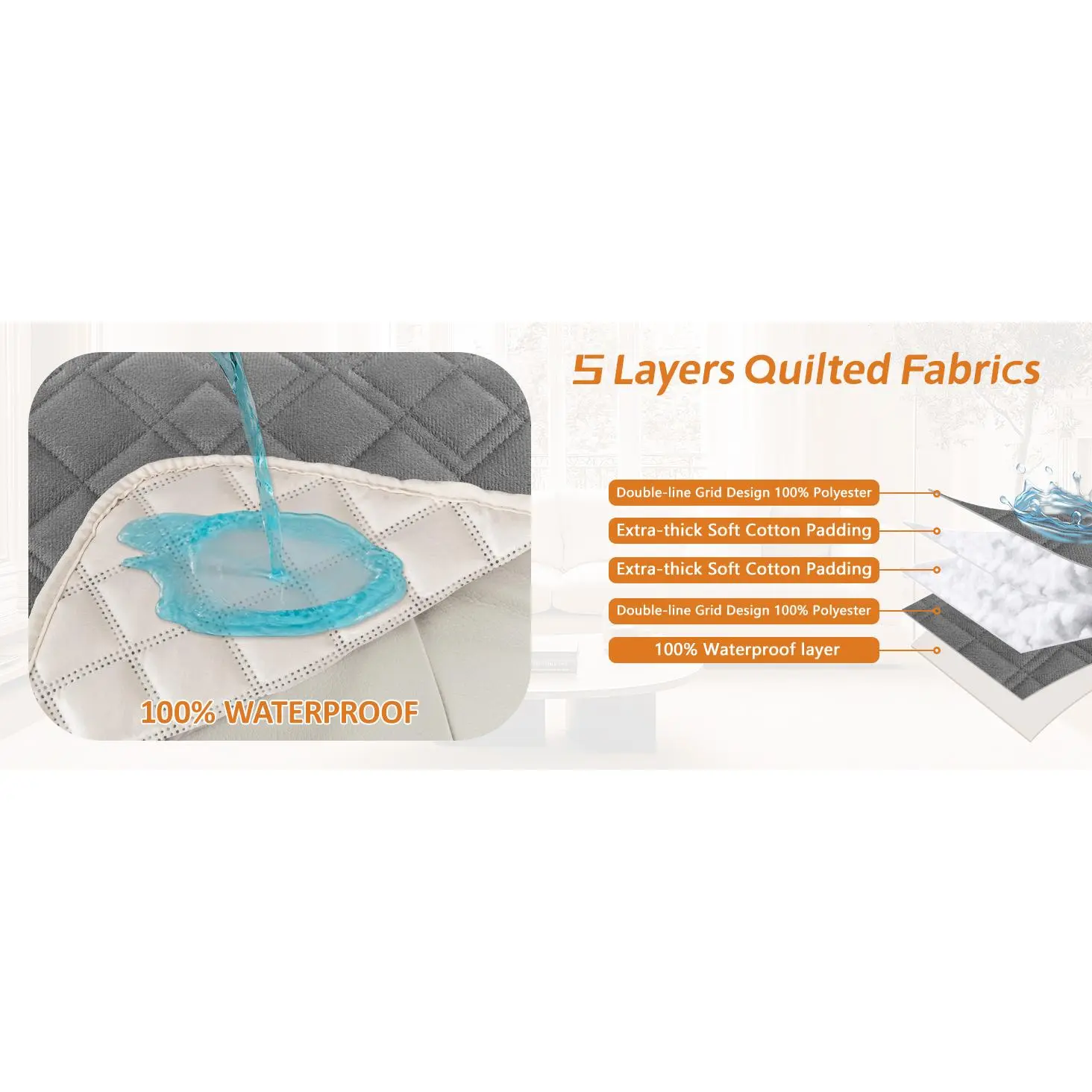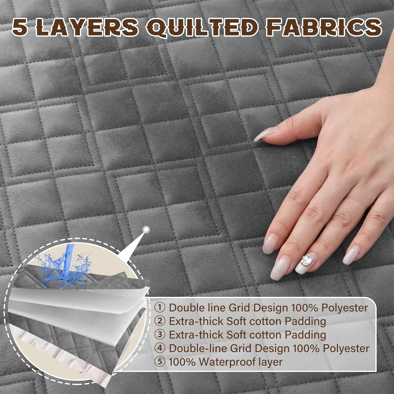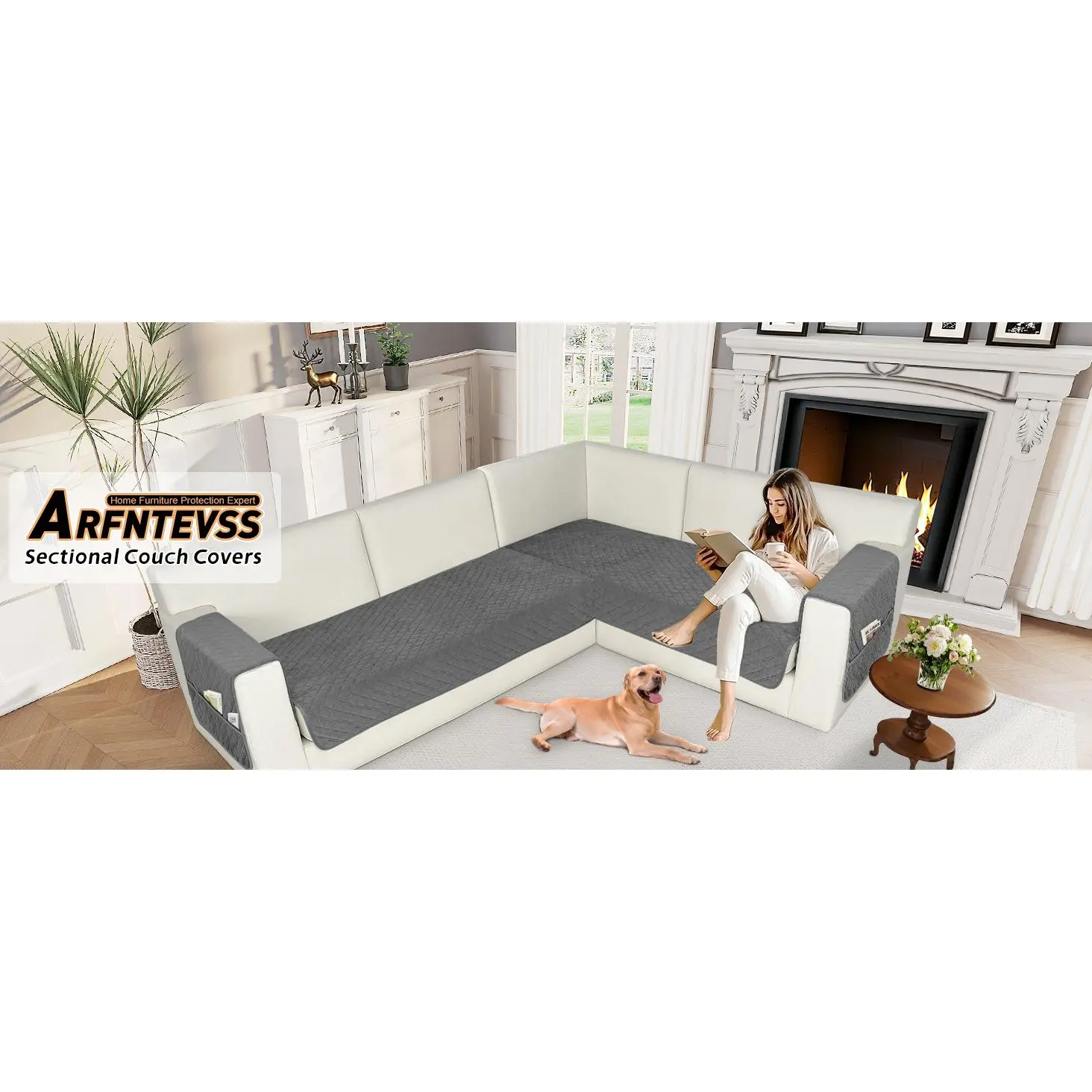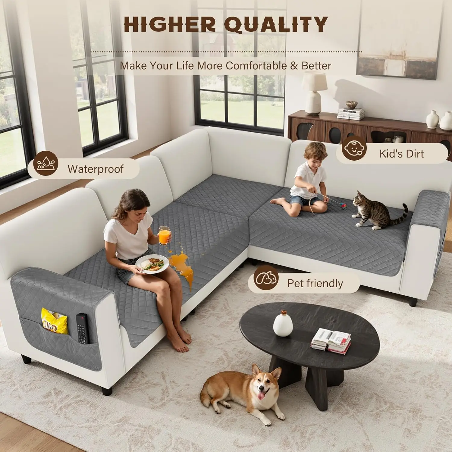 100% Waterproof Sofa Protector: This pet friendly corner sectional couch covers for dogs features a 100% water proof backing layer that protects your couch from spills like coffee, juice, or pet accidents.The waterproof l shape couch cover also protects against pet hair, scratches, and everyday wear and tear, keeping your sofa clean and look refreshed.Especially suitable for families with pets and kidsLuxurious Velvet & Thick Padding: The plush waterproof couch cushion covers for sectional sofa are made from super soft velvet with an elegant diamond pattern.The thick, cushioned filling provides exceptional comfort while sitting and acts as a strong barrier against pet claws, preventing snags and damage to your sofa fabric underneathNon-slip Design & Armrest Pockets: The l shaped couch covers for sectional sofa set stays securely in place thanks to reinforced built-in anti-slip fabric strips, preventing messy shifts.Fits most fabric and leather sofas.Three pockets on both arms let you store remotes, glasses, or books within easy reach, no more lost items between cushions, keeping your living room tidy and organizedCustom Fit 5-Piece Set: The sectional sofa slipcovers includes 2 sectional sofa seat covers, 1 corner seat piece, and 2 arm covers for a custom fit on your sectional sofa.Choose from Large, Extra Large, or XX-Large sizes, the sectional sofa cover is suitable for most l shaped or u shaped modular sectional sofas.Measure your sofa using our picture guide to find your perfect match easilyEasy Care & Machine Washable: This universal sectional cushion covers is designed for convenience-simply machine wash on cold for a fresh look, and the sectional cover waterproof backing retains its shape and water-resistant properties after washing. Wrinkle-resistant fabric means no ironing is required, making the l shape sofa cover a practical choice for busy households