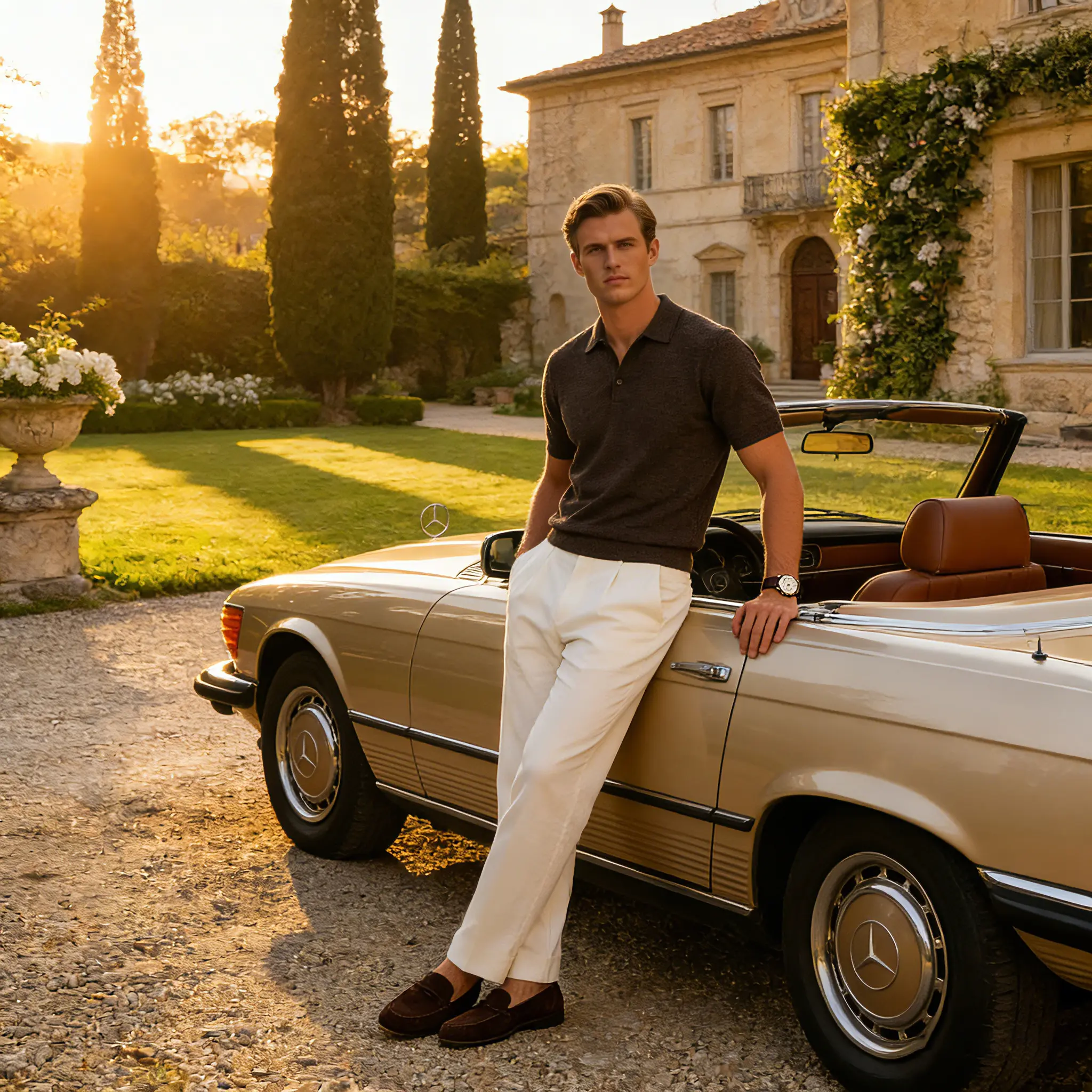 LazyRoad Men's Knit Polo Shirt crafted with 29.2% Lyocell, 29.1% Acrylic, 28.7% Viscose & 13% Linen. Features ultra-breathable, lightweight design with the soft touch of lyocell and fresh texture of linen. Classic relaxed fit, neutral color options, perfect for summer office, dates, and casual outings—embrace old money quiet luxury.