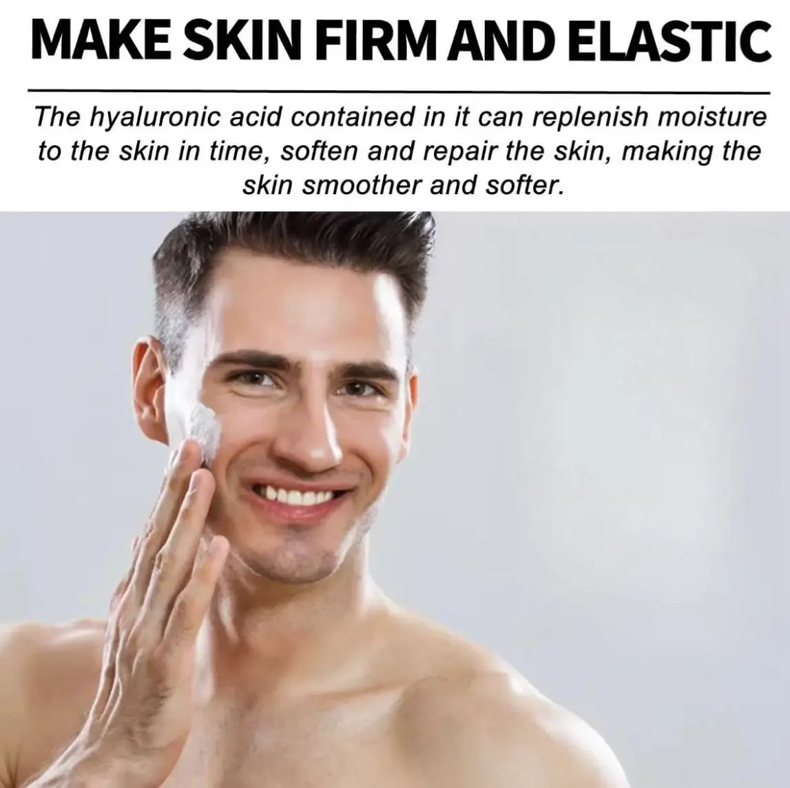 Our men's cream contains hydrolyzed collagen, retinol, and hyaluronic acid. It can replenish skin moisture in time, soften and repair the skin, leaving it smoother and softer. It is easy to use: after cleansing, take an appropriate amount of this product, apply evenly to the face, and gently massage with fingertips until fully absorbed. It deeply moisturizes the skin, delays skin aging, and restores youthful vitality.