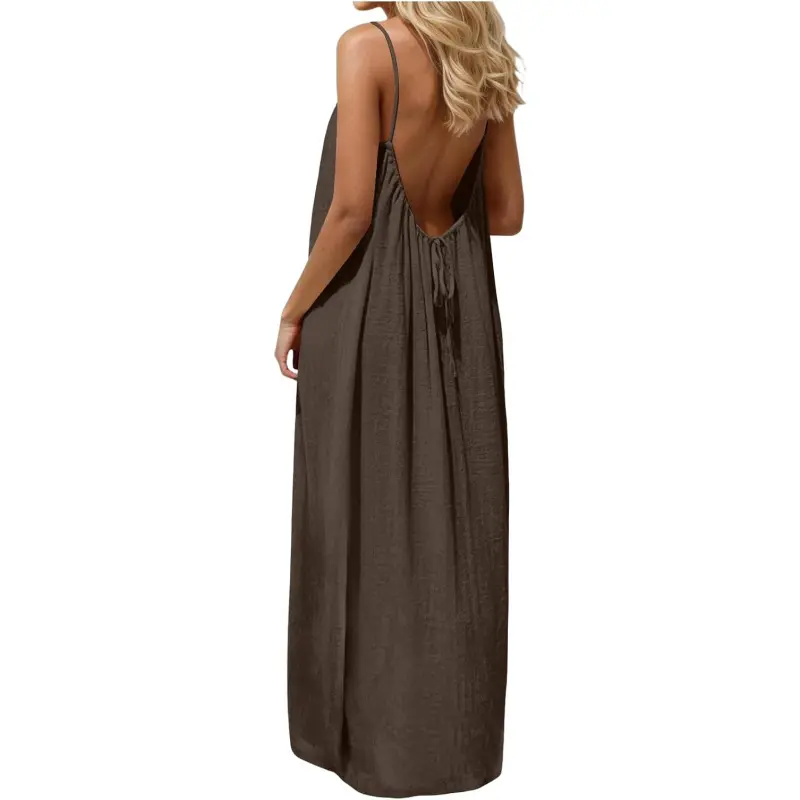 Casual strap dress, backless sleeveless long home dress, with back tie