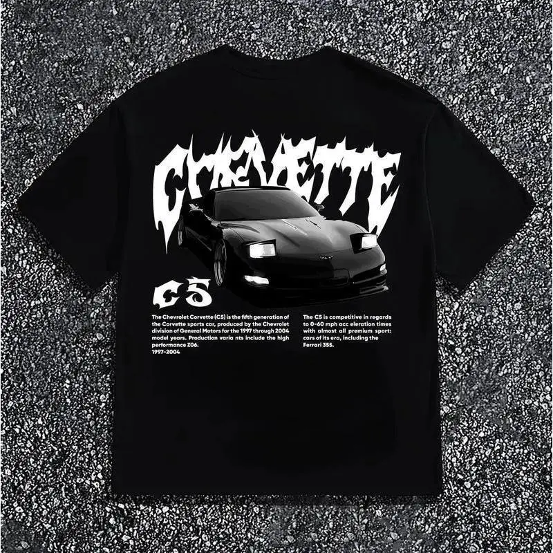Corvette C5 T-Shirt, Retro Car Graphic Tee, Y2K Streetwear Shirt for Car Enthusiasts, Vintage Chevy Racing Fitted Crewneck Soft Classic Cotton graphic tee zac brown sphere las vegas merch funny t shirt marcus the worm merch graphic tee 90s graphic tees