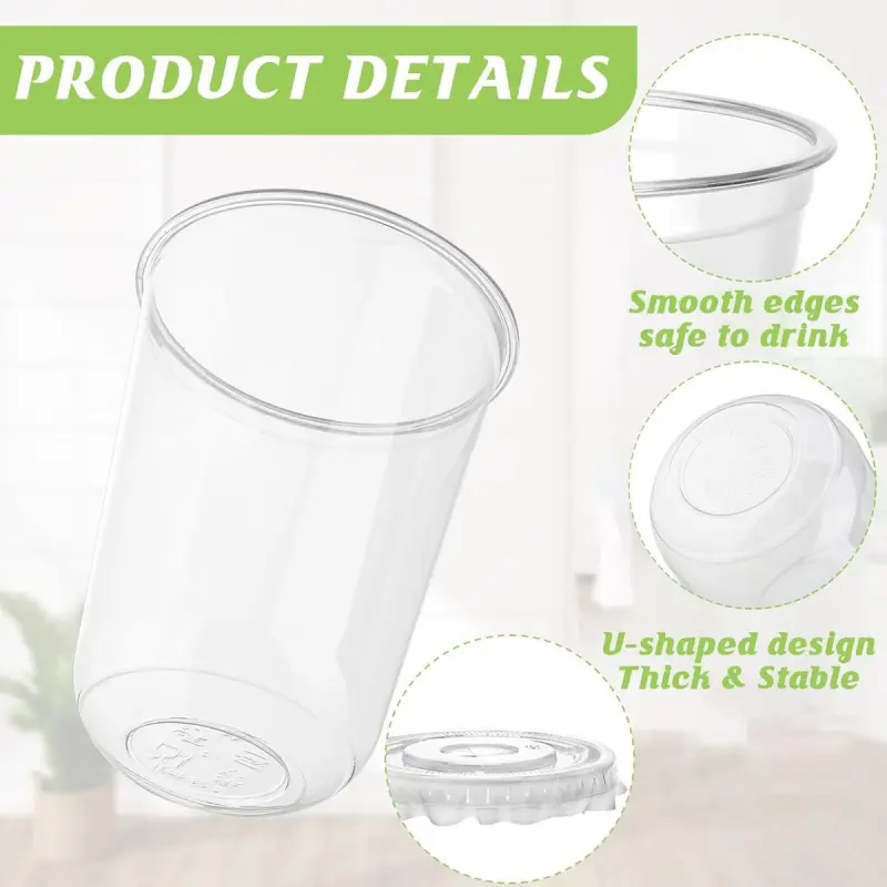 Bulk package: This set contains 50pcs plastic cups to meet of your needs at parties, picnics and other events. The ideal container: This clear plastic cup is suitable for drinks and fruit. With transparent surfaces and lightweight surfaces, your food and drinks will display in good shape. Specifications: Material: PET Color: Transparent Size :500 ml / 16 oz The package includes: 50sets cups Note: Manual measurement, please allow a slight error in size. There may be slight differences in color due to different screen displays.