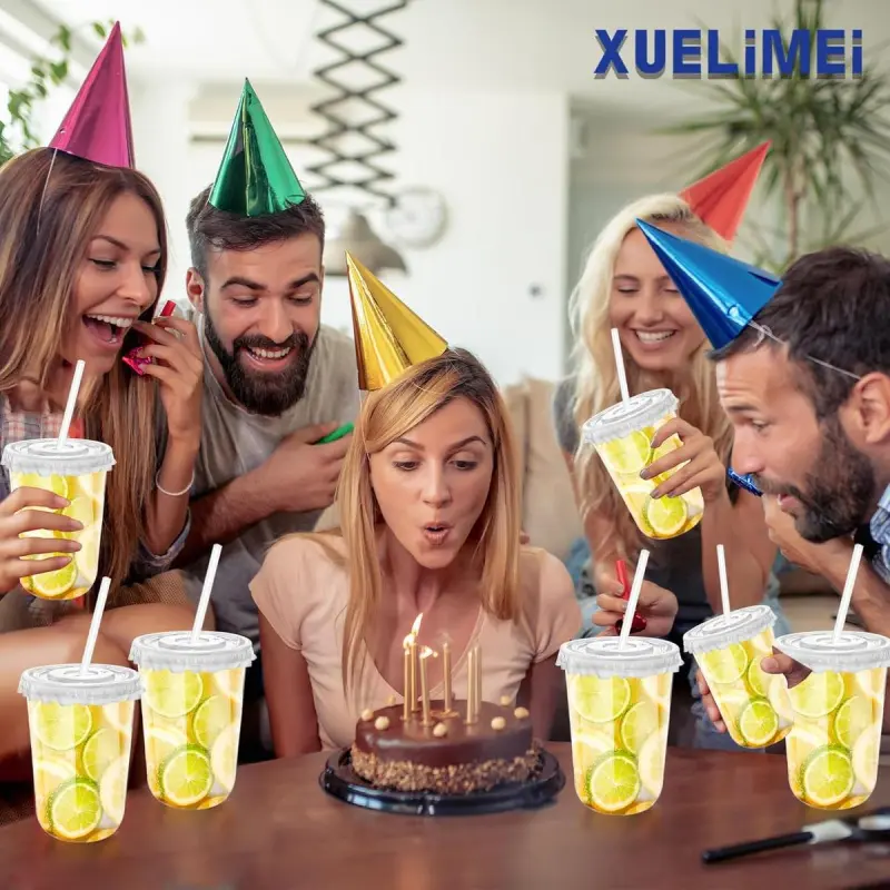 Package includes: You will receive 16oz plastic wine glasses, 50pcs straws and 50 sheets of leakproof paper, measuring approximately 3. 54x4. 65 inches, enough for your party, these disposable plastic wine glasses are safe to drink and for tasting cocktails, whiskeys and wines:These 16oz single-use plastic cups are made from high-quality PET plastic and. They are crystal clear, durable, impact and crack resistant, transparent material gives the cup a food and drink appearance, giving you a good use experience. Please note that you can pour liquids below 80 ℃ Wide ApplicationOur plastic cocktail glasses are ideal for serving all kinds of hot and cold drinks such as champagne, beer, wine, cocktails, juices, smoothies, milk tea, coffee, lemonade, iced tea, bubble tea, lemonade, smoothies, cakes, sodas, frozen drinks, mixed drinks and more! It is a must-have item for coffee shops, family gatherings, birthday parties, weddings, graduations, Christmas and other occasionsCompact and Lightweight::Our plastic cocktail glasses are lightweight, stackable and won't take up a lot of your storage space. In addition, these disposable wine glasses do not need to be cleaned, as they can be discarded directly after use, saving you cleaning time and allowing you to fully enjoy your partyAnd you don't have to worry about the knocking over the glass. Please note that the goods will be slightly squeezed during transportation, which is a normal phenomenon and can be taken out only by rotatingApplication: Our plastic cocktail glasses are suitable for holding a variety of hot and cold drinks, enough to meet your party use and change requirements, U-shaped cups are family gatherings, birthday parties, weddings, graduation ceremonies, Christmas and other occasions essential items