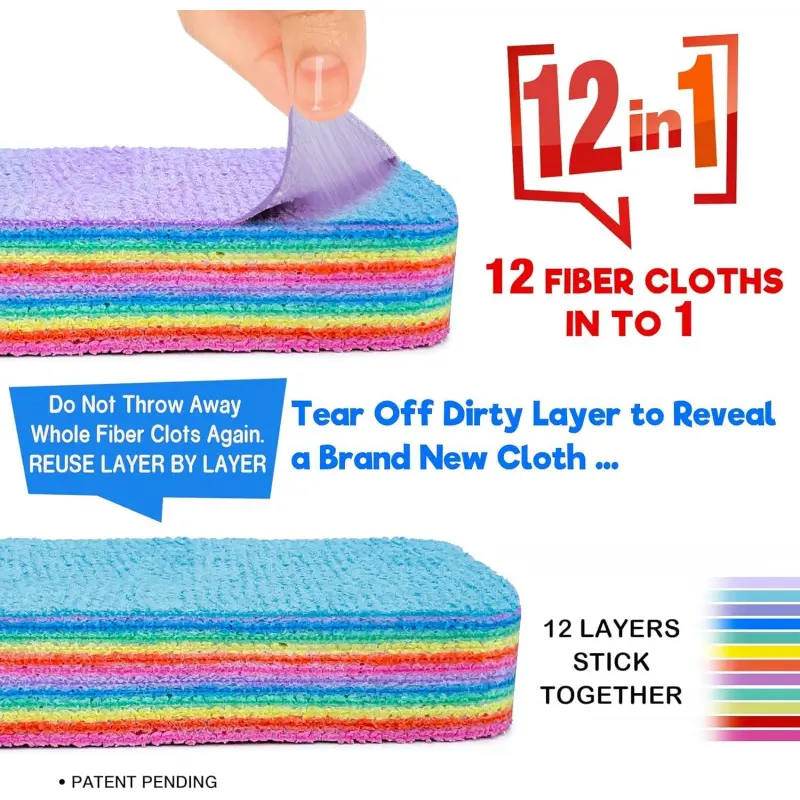 Microfiber Super Fiber Rag, 12 Fiber Layer on 1 Rag, Cleaning Cloths, Extraordinary Liquid Absorption Ability, Stain Remover, Home Daily Use Sponge, Kitchen, Bathroom, Living Room