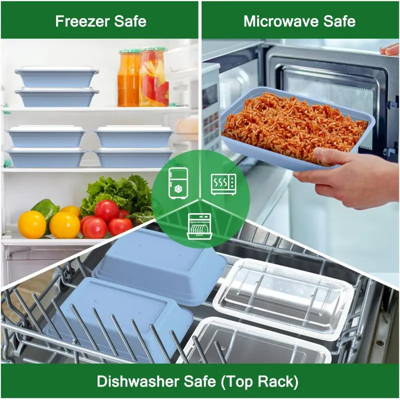 5. 50 Pack (100-Piece) 32 oz Meal Prep Containers Reusable with Easy Open Lids, Sturdy Leakproof Food Safe, Microwave Freezer Dishwasher Safe, To Go Take Out Plastic Food Storage Pans with Lids, Blue