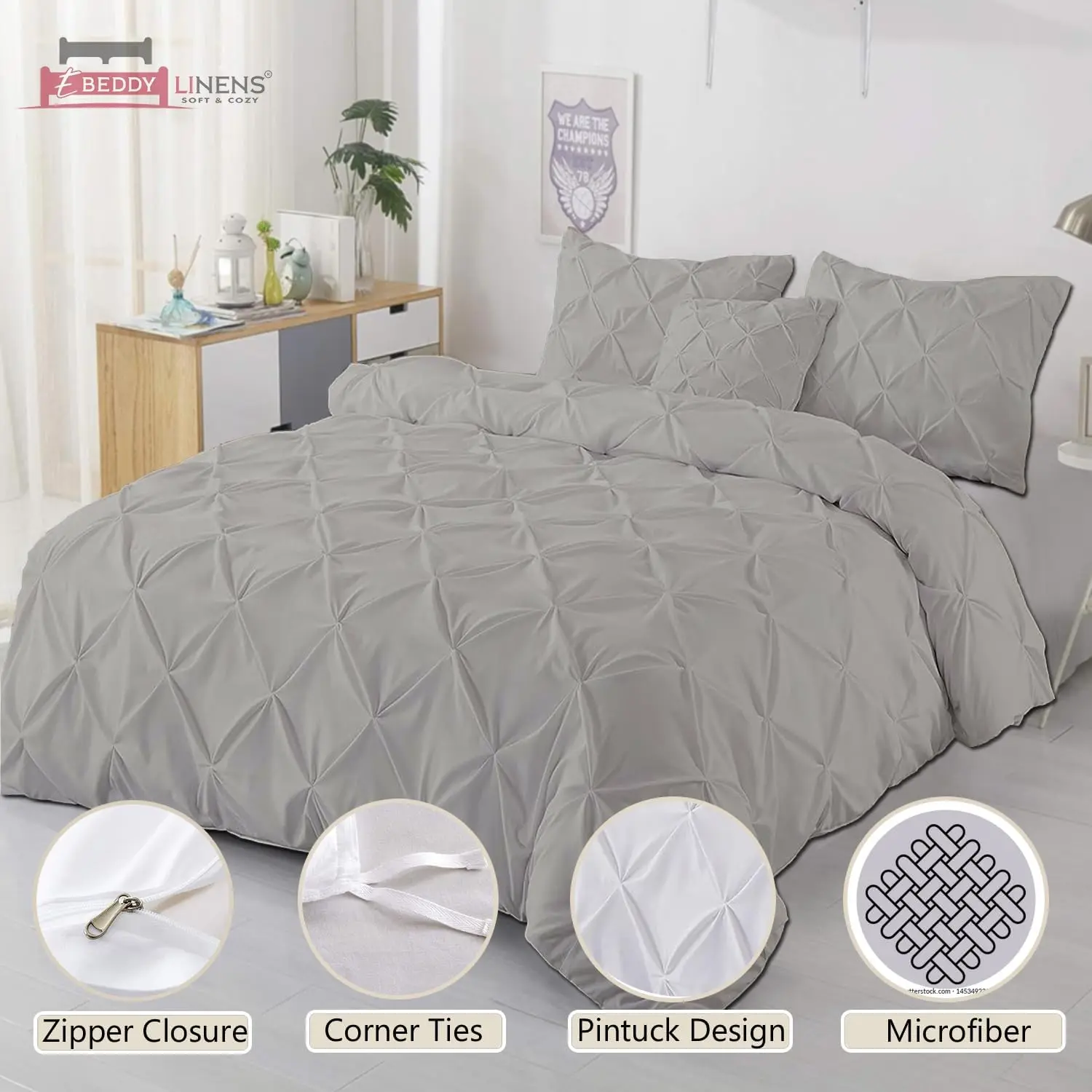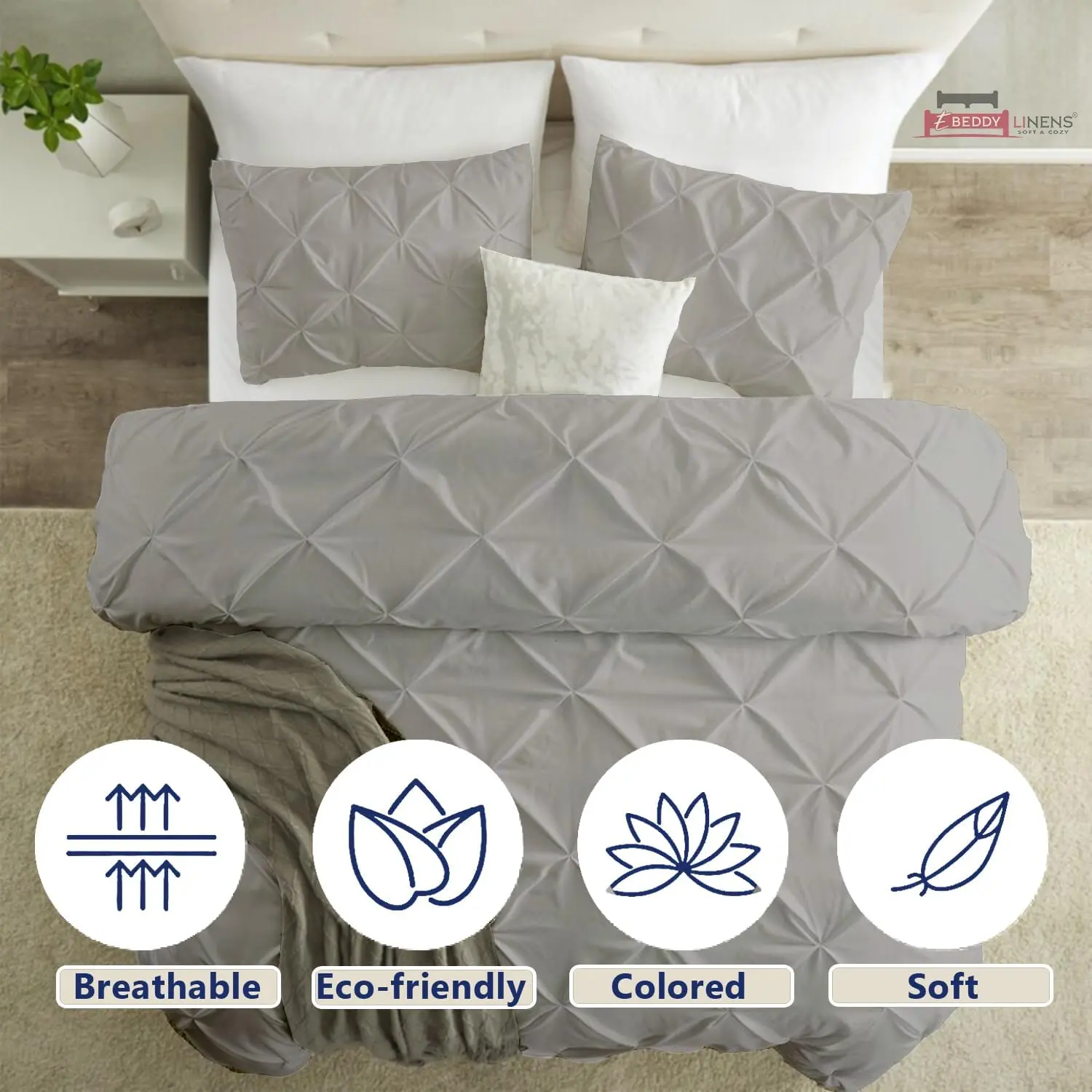 Pleated Pintuck Duvet Cover Set Oversized King 120x98 Inch 100% Microfiber Soft and Breathable 3 Pieces Comforter Cover Zipper Closure & Corner Ties Silver Grey