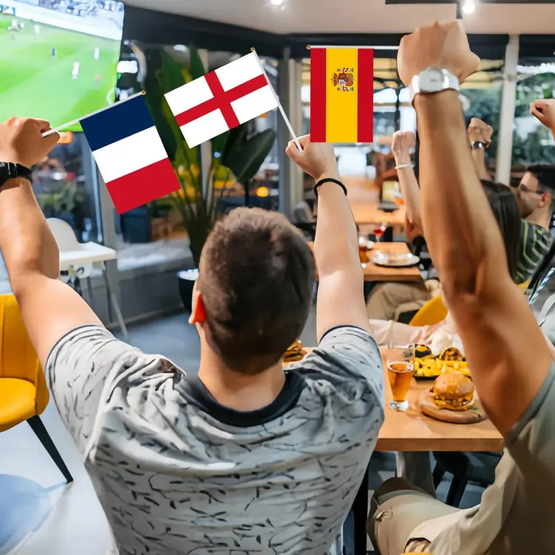 1.Our 2026 World Cup football hand flags feature the national flags of 16 participating countries and come with a 30 cm long flagpole.They can be displayed anywhere you want, such as your home, car, office, school, club, etc